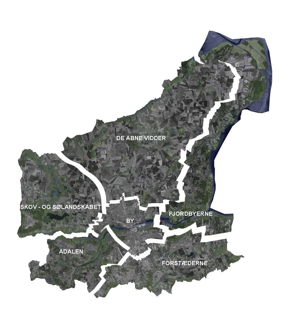 I Kommuneplan 2021 inddeles Randers Kommune i seks karakterområder: Fjordbyerne, De åbne vidder, Skov- og sølandskabet, Ådalen, Forstæderne og Randers By. Med hver sin identitet og styrke kommer disse nye karakterområder til at skabe rammen for den strategiske udvikling af kommunen som helhed.