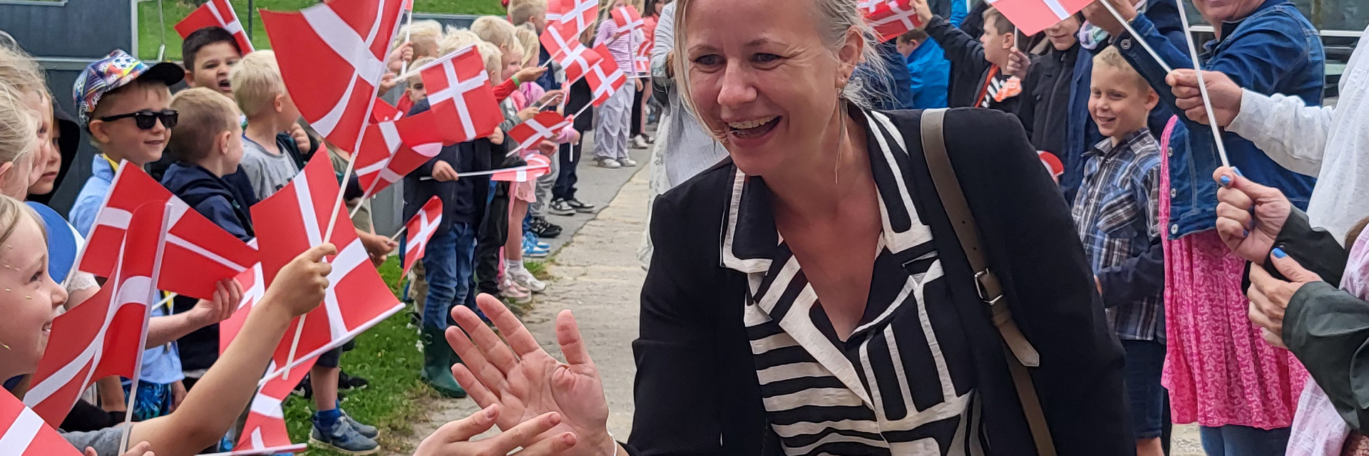 Randers Kommune har ansat Marlene Ankjær som skoleleder på Bjerregrav Skole, som kommer med lang erfaring som både viceskoleleder og pædagogisk leder. På hendes første dag stod børnene klar i en 100 m lang flagallé.