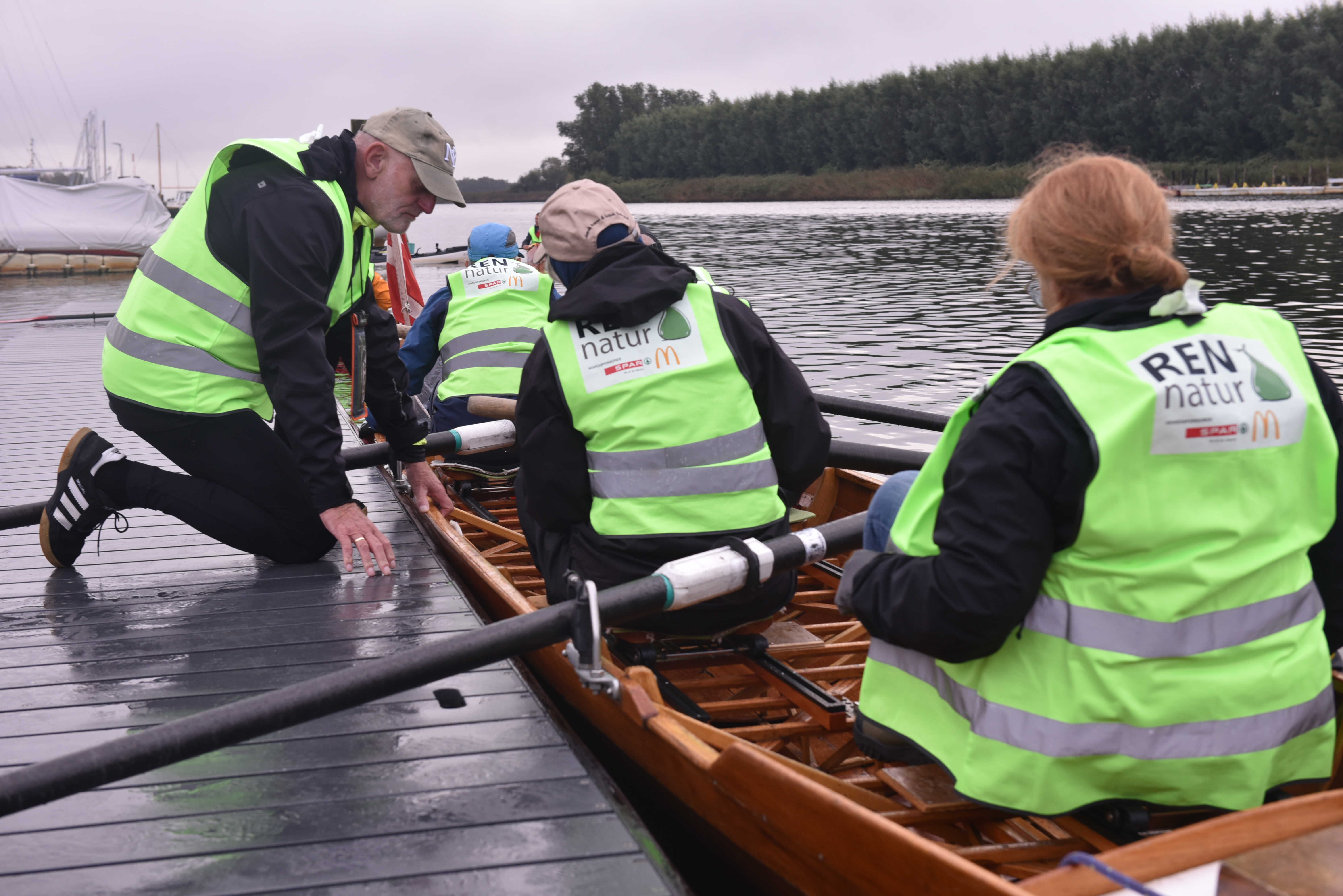 Dagens tur på Gudenåen krævede lidt mere og andet udstyr, end roerne normalt har med om bord. Både affaldssække, snappere og handsker var pakket, og roerne selv havde iført sig gule veste med teksten 'Ren Natur' på ryggen.