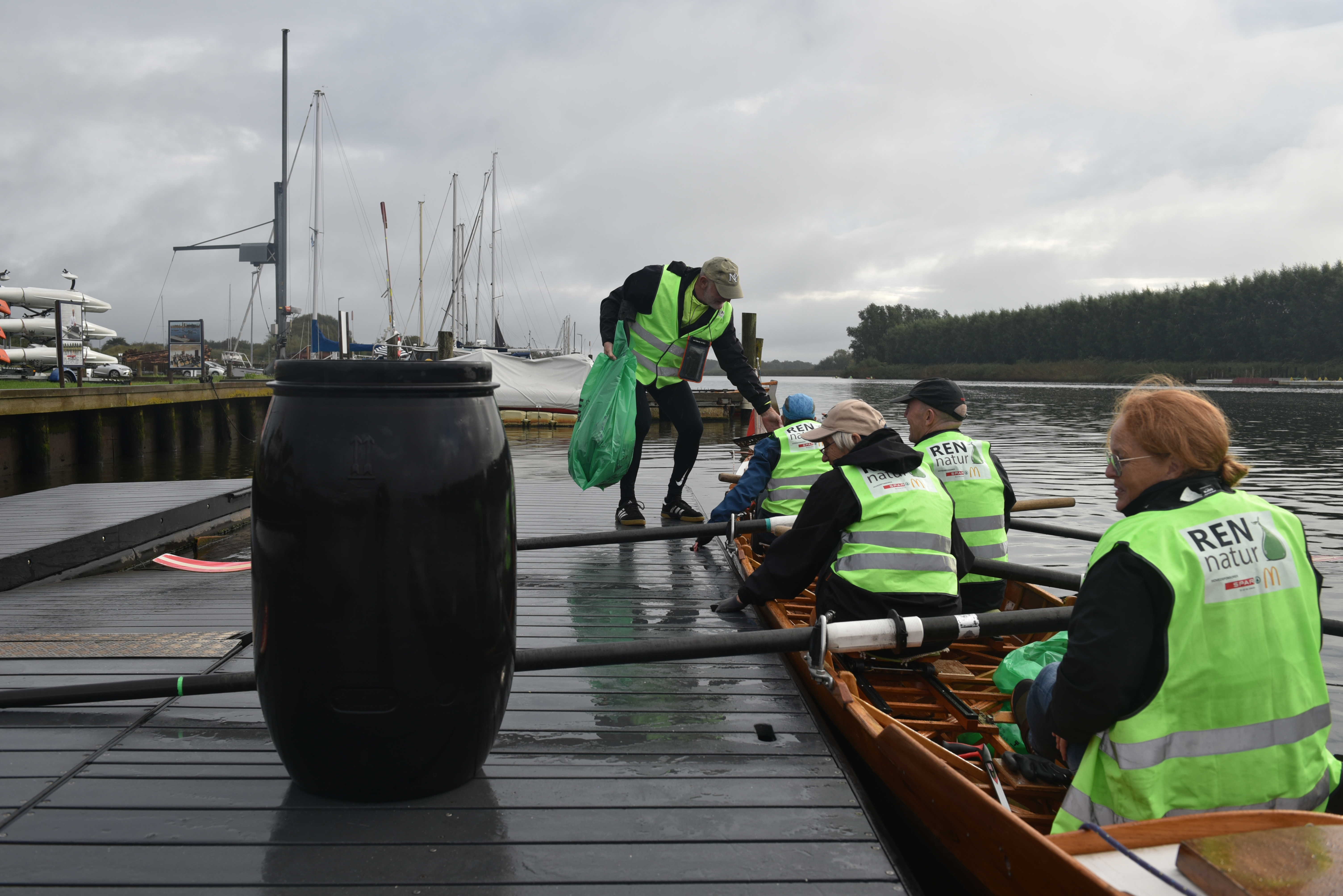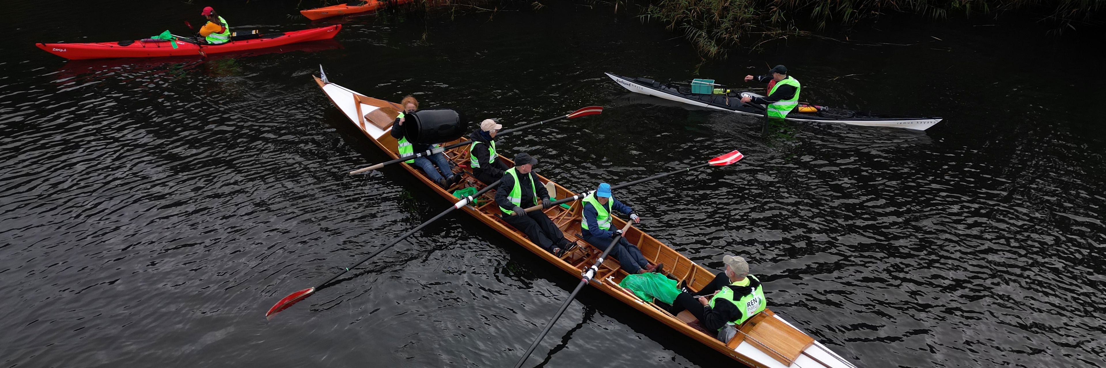 Selvom vejrudsigten forudsagde regnvejr, var roerne i Randers Roklub stålsatte på dagens opgave: Fjern affald på Gudenåen. De otte regntøjsklædte roere var klar fra morgenstunden, tre i kajak og fem i en robåd. Initiativtageren er bestyrelsesmedlem Vibeke Christensen, der ikke lader sig stoppe af dårligt vejr: