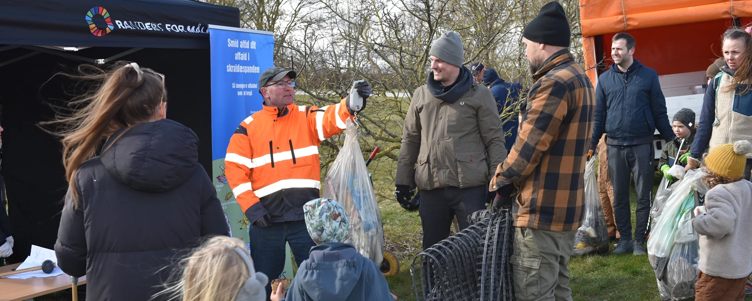 Affaldseventen på Justesen Plæne var arrangeret af Randers Kommune og en række frivillige affaldsorganisationer i Randers. Per Christensen fra organisationen Randers Rydder Op vejede det affald, som familierne havde samlet i affaldssække: