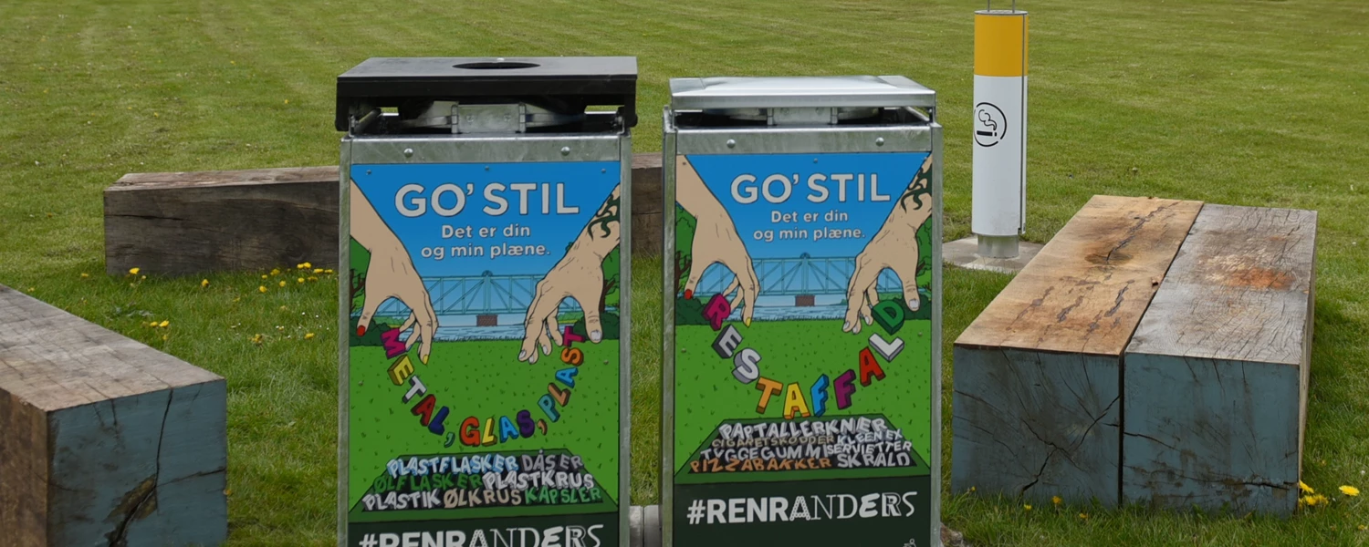 Sol og sommer betyder ofte masser af affald i parkerne. Derfor samarbejdede Randers Kommune i foråret med en gruppe unge brugere af plænen om nye affaldsinitiativer på Justesens Plæne i Randers. Samarbejdet resulterede i opstilling af iøjnefaldende skraldespande med sloganet GO´ Stil, nye siddeområder og nye skodriste under borde og bænke: