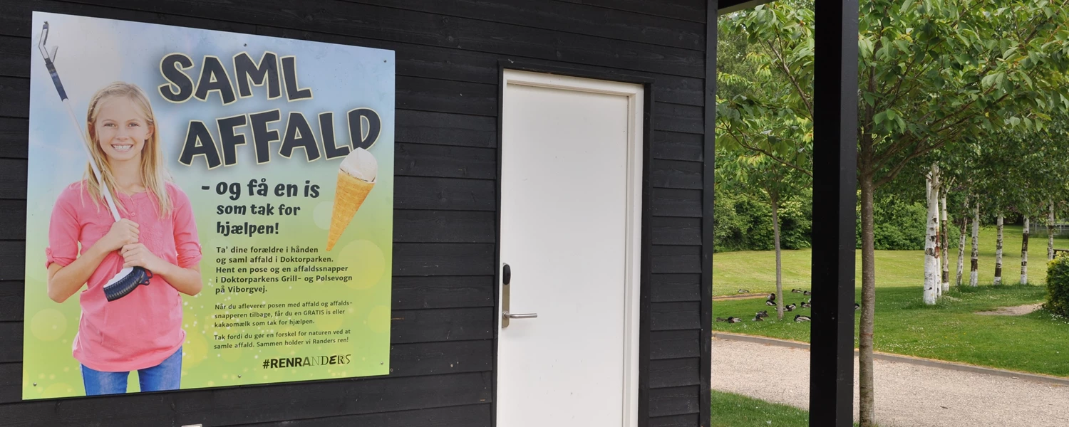 Nu har børnefamilier mulighed for at samle dåser og papir i Doktorparken og efterfølgende få en is som tak for hjælpen. Randers Kommune sætter fokus på henkastet affald i børnehøjde med et nyt initiativ i samarbejde med Doktorparkens Grill & Pølsevogn på Viborgvej.