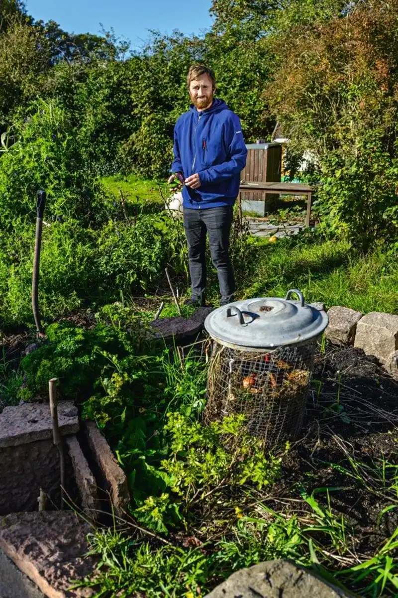 Søren og familien dyrker køkkenhaven med bæredygtighed for øje. Det vil sige, at de ikke bruger maskiner og ukrudtsmiddel, og at jord bliver hentet på genbrugspladsen frem for at købe spagnum i pose.