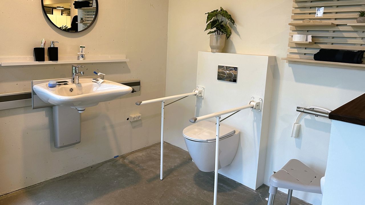 Køkkenet er udstyret med et væld af løsninger, der gør det nemmere at lave mad og spise, mens badeværelset har hjælpemidler og teknologier, der kan hjælpe dig til at klare den personlige hygiejne selv.