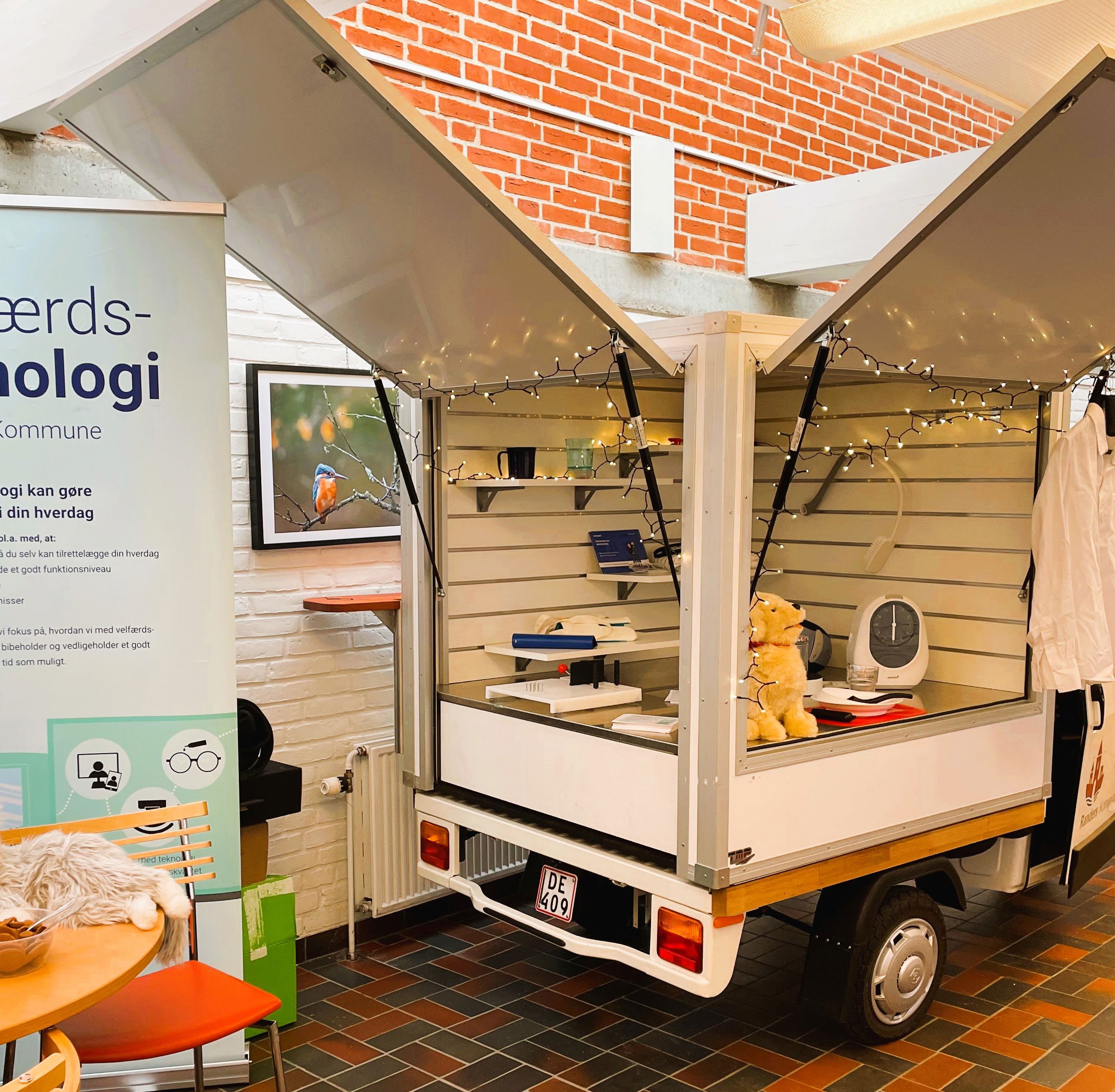 For at kunne møde borgerne i lokalområderne, har Randers Kommune en mobil udstilling, hvor vi viser mindre velfærdsteknologier og hjælpemidler. Vores Tuk-tuk kan du blandt andet møde ved biblioteket, Storcentret, Sundhedshuset, bosteder og plejehjem. Når vi ikke kan have vores tuk-tuk med, har vi en kuffertudstilling, som vi tager med på tur.