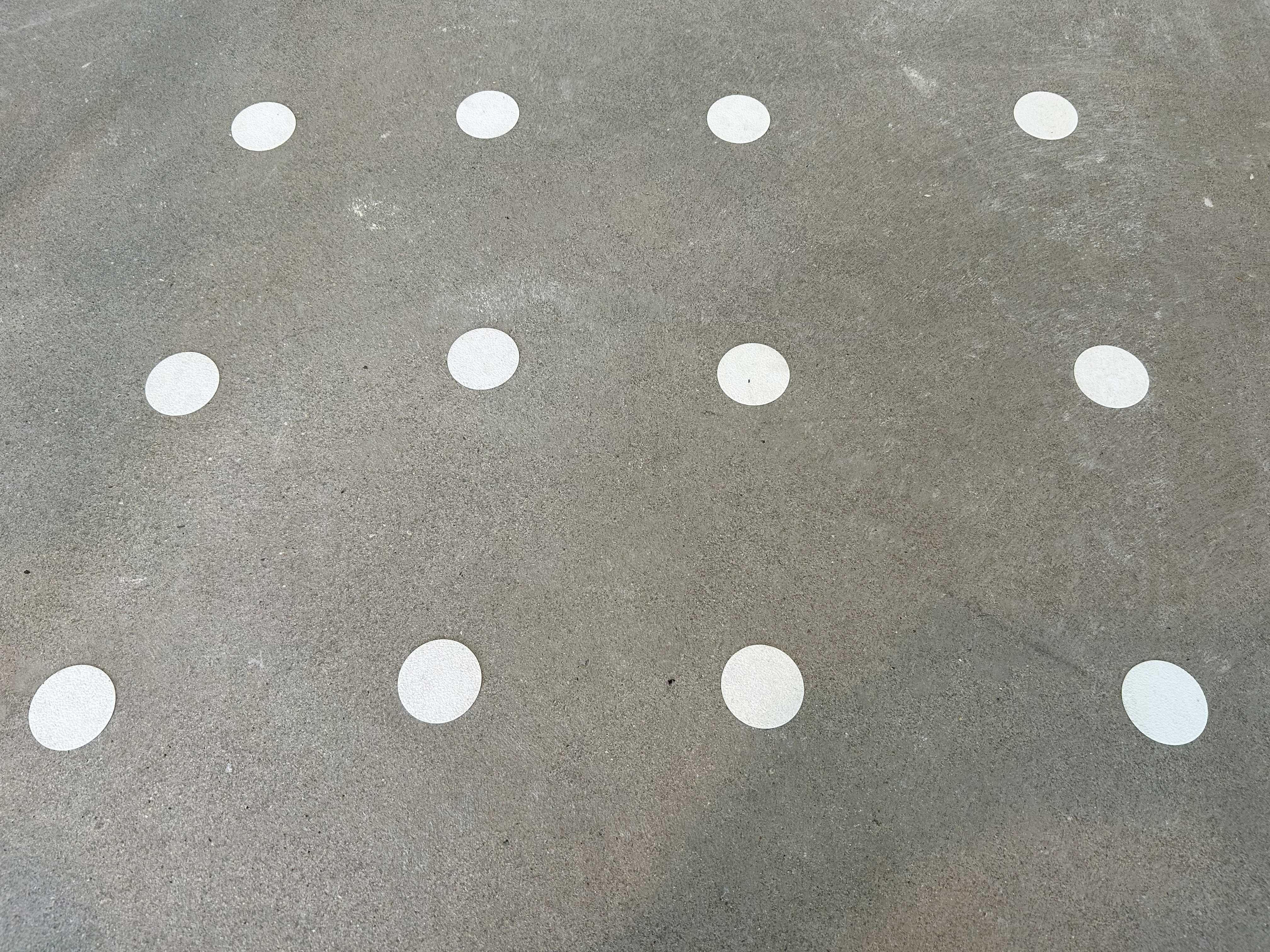 Klistermærkerne skal ligge på tværs af gangretningen parallelt ift. hinanden med ca en halv fods afstand. På den måde sikres det, at man altid har anti-skrid under foden.