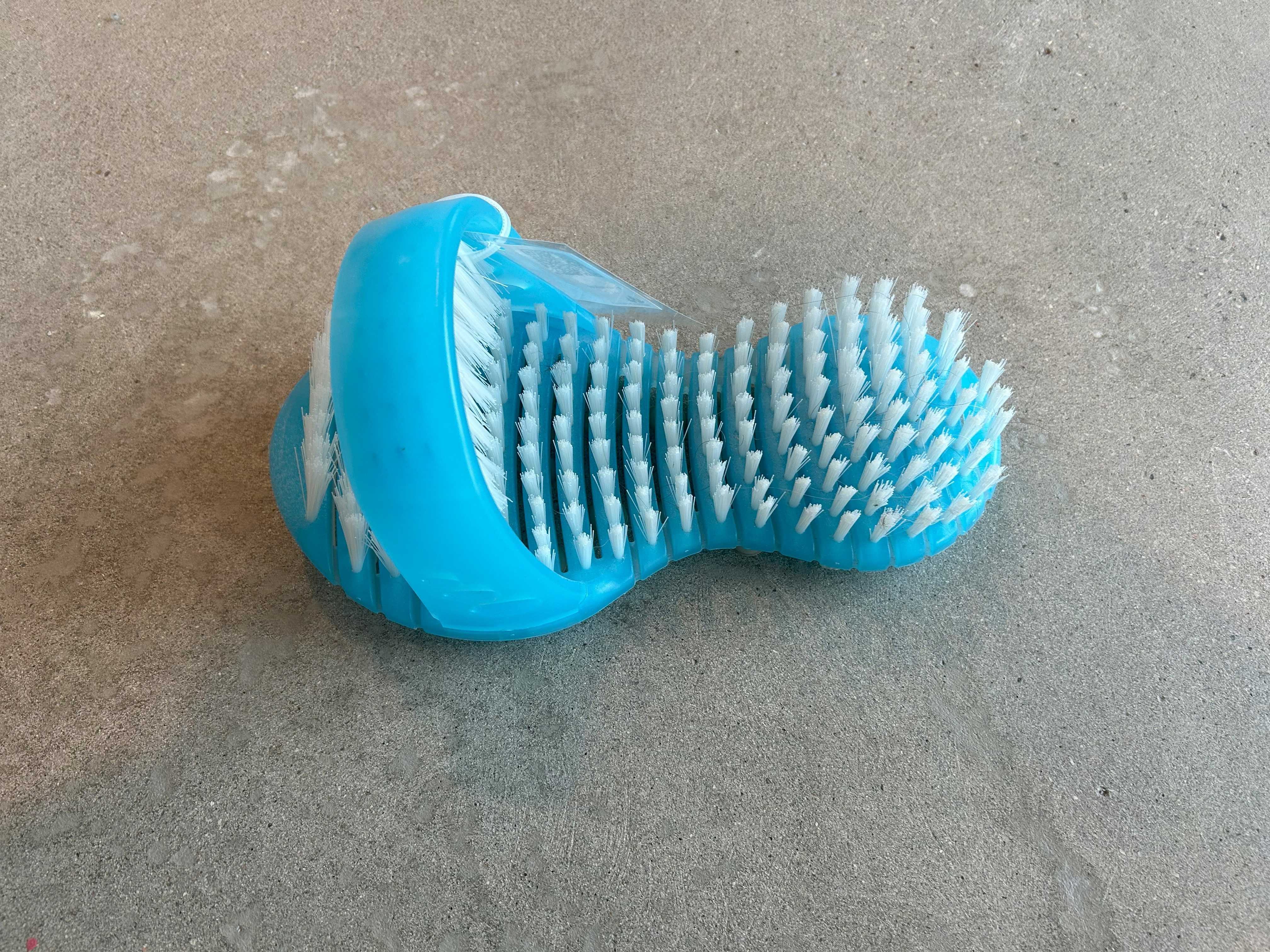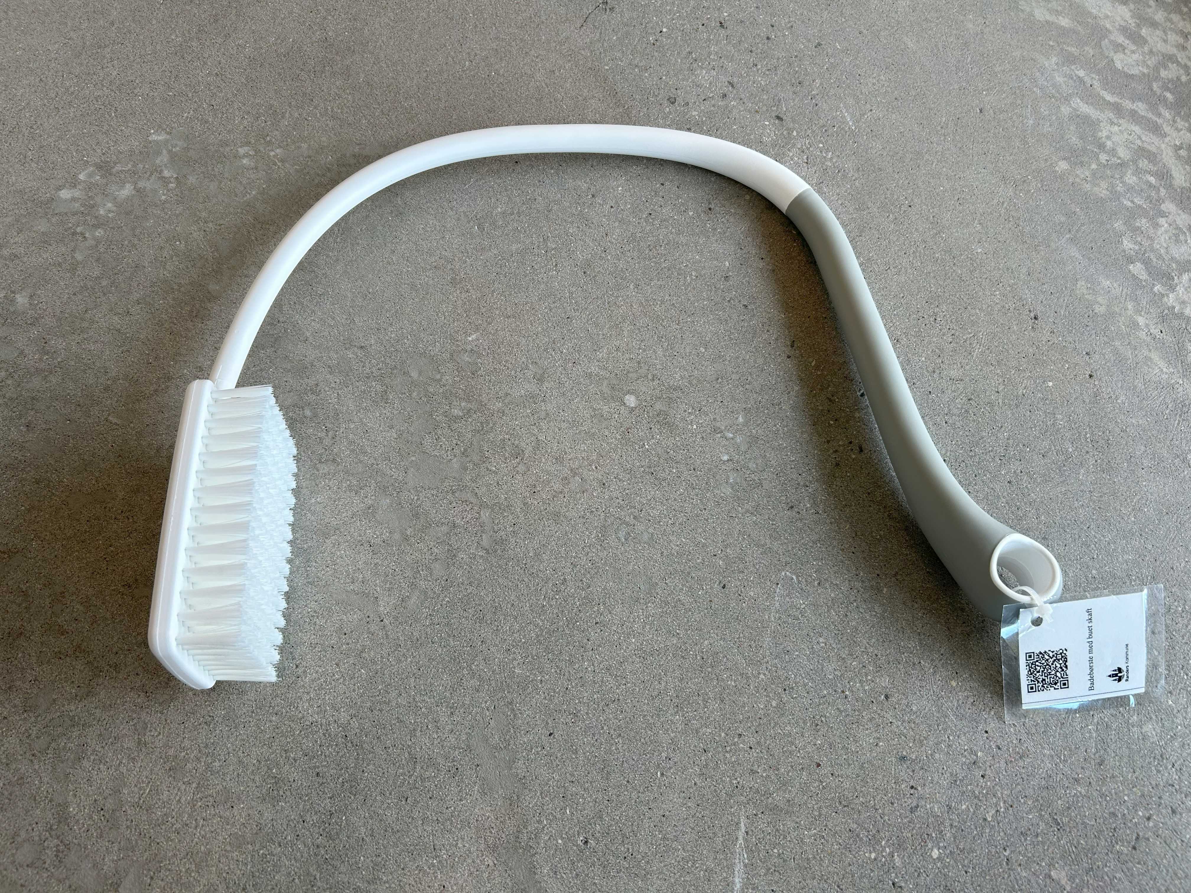 Sandalformet fodbørste med sugekopper under bunden. Bruges til at vaske, massere og stimulere fødderne uden at det er nødvendigt at bukke sig ned.