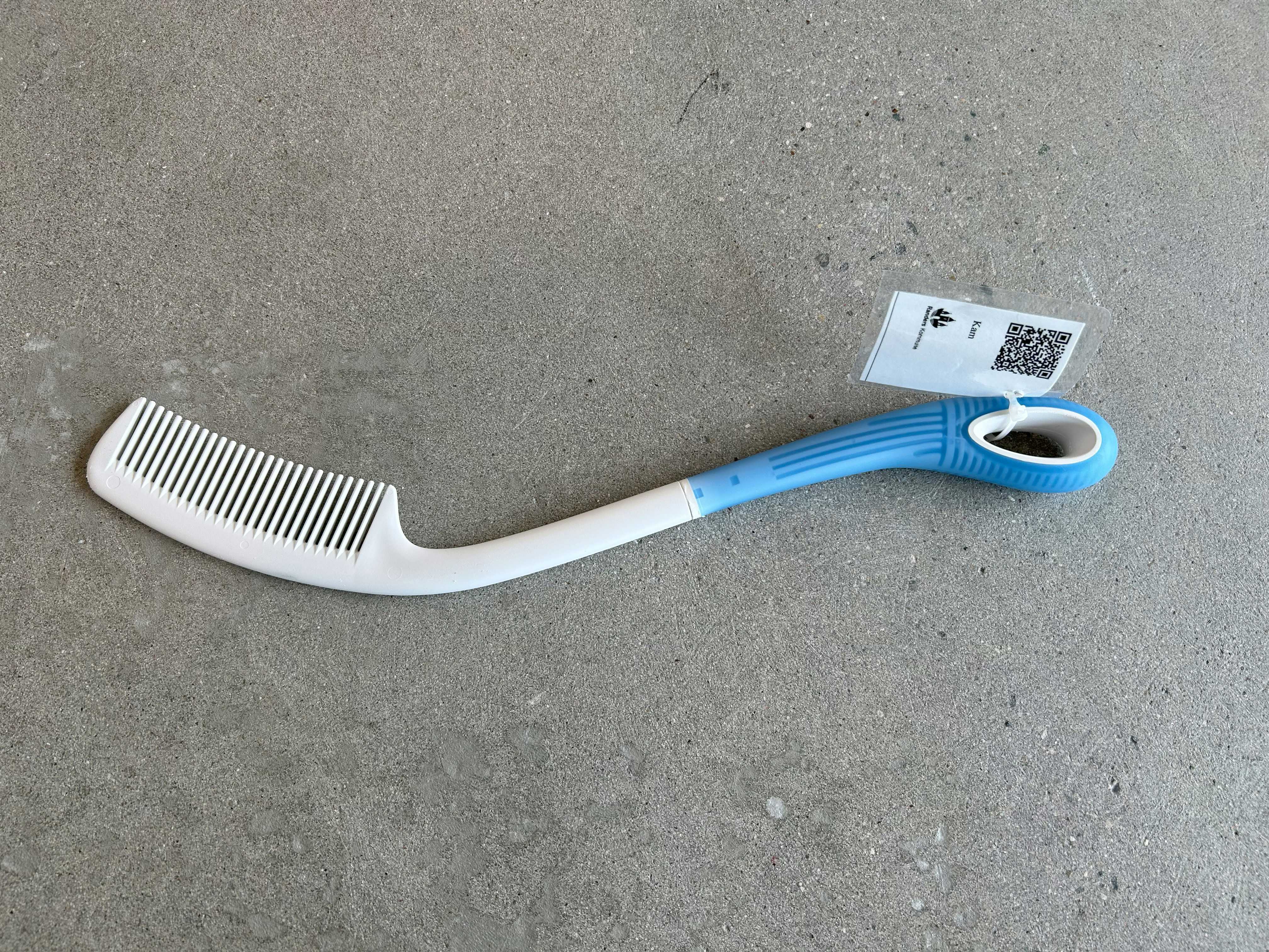 Denne langskaftede kam er specialudviklet til personer med nedsat bevægelighed og svage muskler, hvor det er svært at anvende en almindelig kam til håret. Den ergonomiske udformning gør at hænder, arme og skuldre ikke belastes når anvendes og det er derfor muligt at nå hele hovedområdet.
