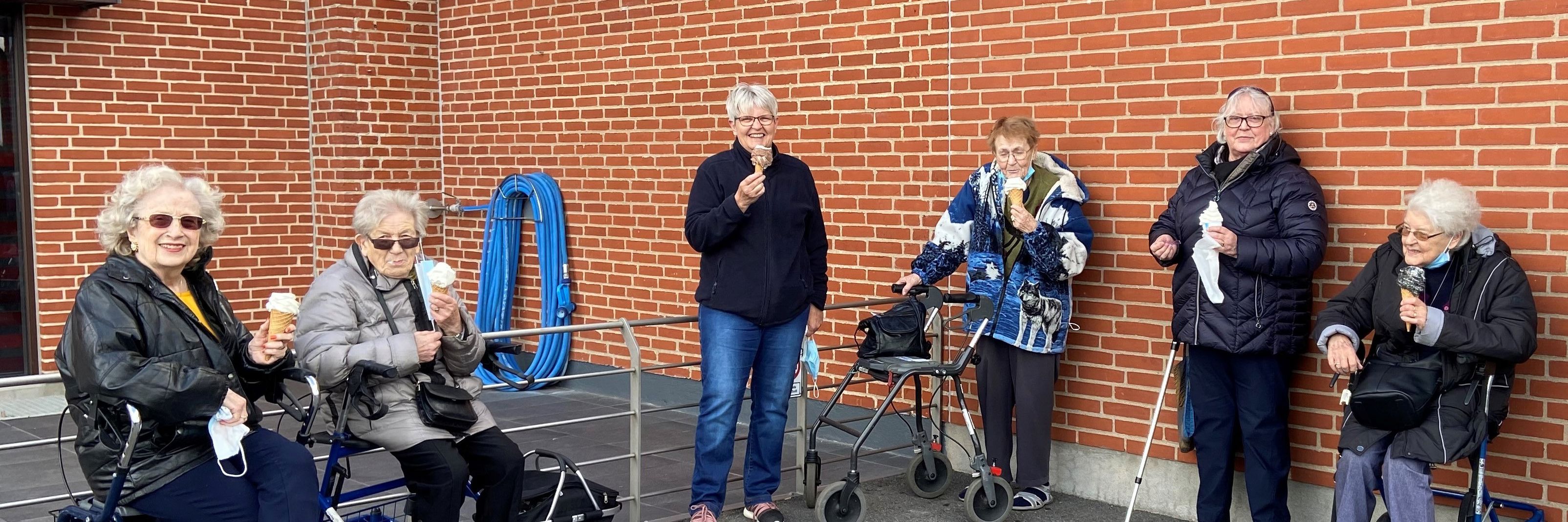 De fem damer fortæller varmt om træningsforløbet, men erkender også, at man kan have behov for lidt motivation for at give den en ekstra skalle. Den motivation introducerede kommunens engagerede aktivitetsmedarbejder Anette Gotfredsen for nylig, da hun satte en lækker is hos Vebbestrup Ismejeri på højkant til alle, hvis damerne sammen kunne cykle 38 km på de indendørs motions-/siddecykler. Det er nemlig cykelafstanden fra Kollektivhuset, hvor de træner, til Vebbestrup Ismejeri.