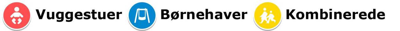 Via nedenstående link kan du se en oversigt daginstitutioner. På oversigten kan du vælge, om du kun vil se en bestemt type institutioner eller kun se institutioner i et bestemt postnummer.