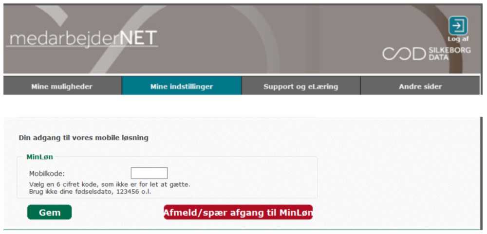 Inden du kan bruge appen, skal du oprette dig på Medarbejdernet.dk. Du skal bruge MitID for at logge ind. Du skal oprette en 6 cifret kode, som du fremover skal bruge sammen med dit CPR-nummer, når du logger på appen. Koden opretter du under "Mine Indstillinger".