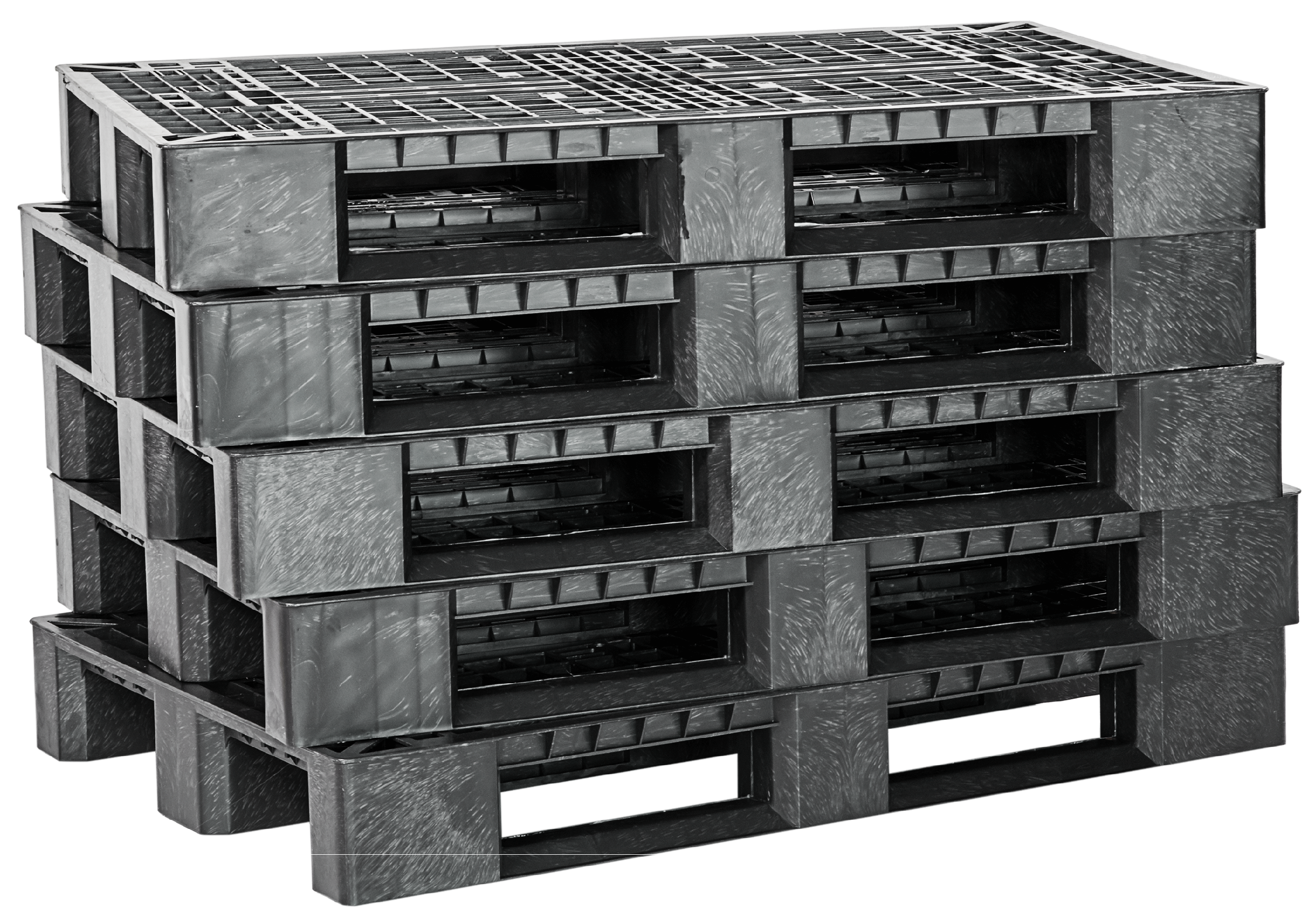 - 50 % er mix plast, dvs. kødbakker og anden husholdningsplast, som ofte er med lim eller etiketter og skal vaskes og behandles mere, før det kan genanvendes. Det er denne gruppe, der nu bliver til plastikpaller.