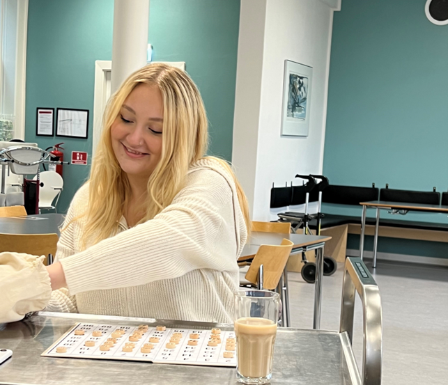 Jeg er frivillig fordi: "Jeg godt kan lide at snakke med mange forskellige mennesker. Jeg synes, det er behageligt at høre deres forskellige historier. Jeg synes, at det gør en forskel, at jeg kan komme og hjælpe med nogle ting, som gør at de kan få det hyggeligt".