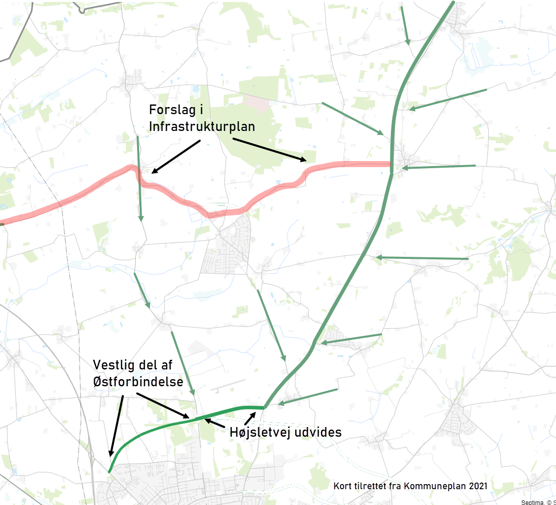 NB: Ved etablering af cykelsti på Højsletvej vil der blive ca. 18 km sammenhængende cykelsti