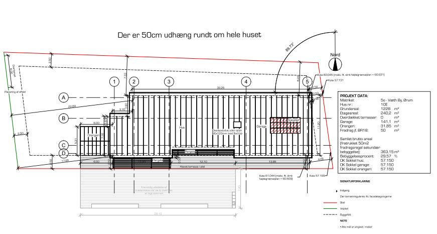 Randers Kommune har meddelt landzonetilladelse til opførelse af et nyt enfamiliehus på 240m² med en integreret garage på 75m², integreret udhus på 66m² samt en uopvarmet udestue (orangeri) på 32m² - i alt 413m².