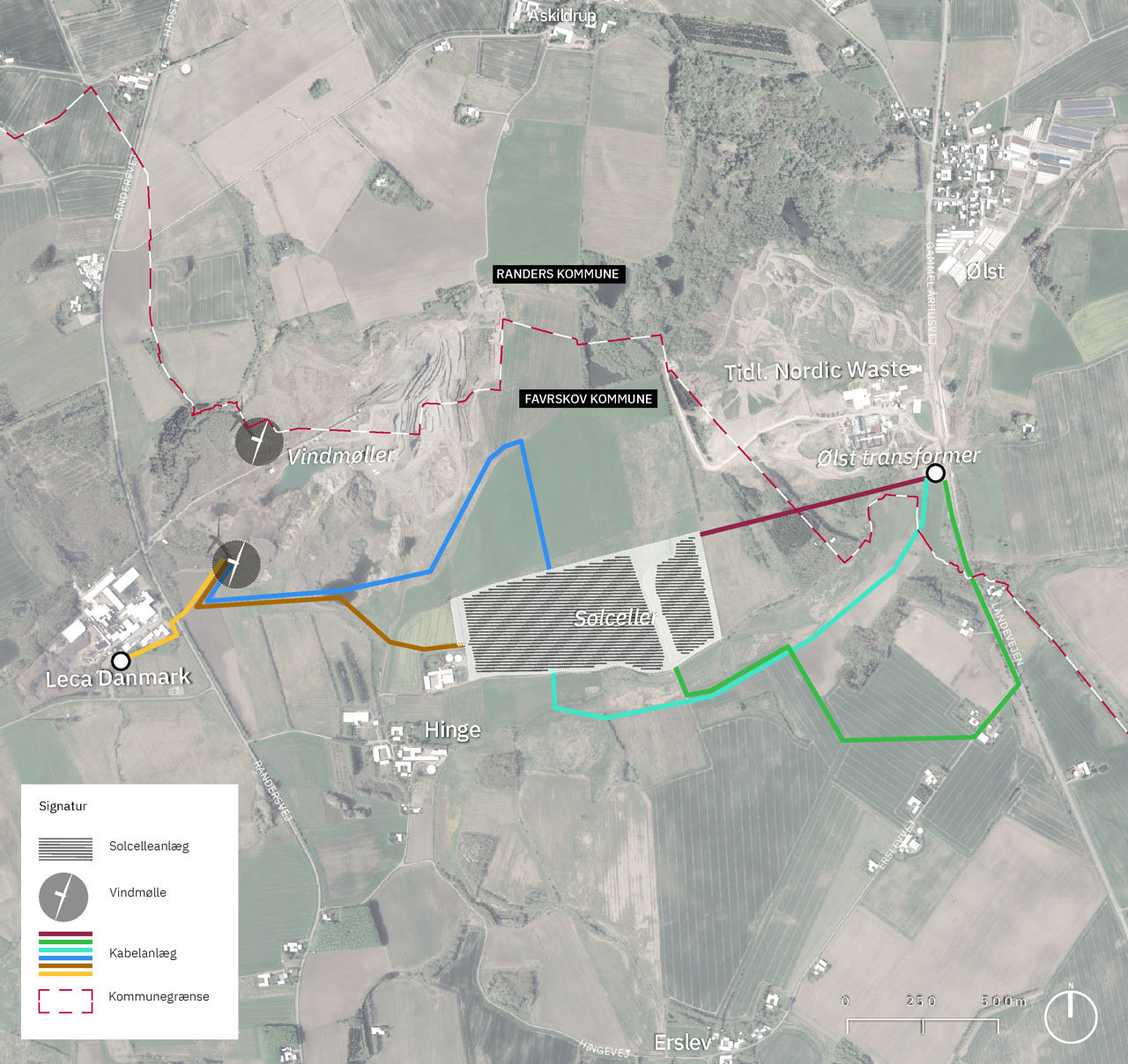 lokalplan og et kommuneplantillæg til at etablere et nyt kombineret vindmølle- og solcelleanlæg øst for Leca Danmark.