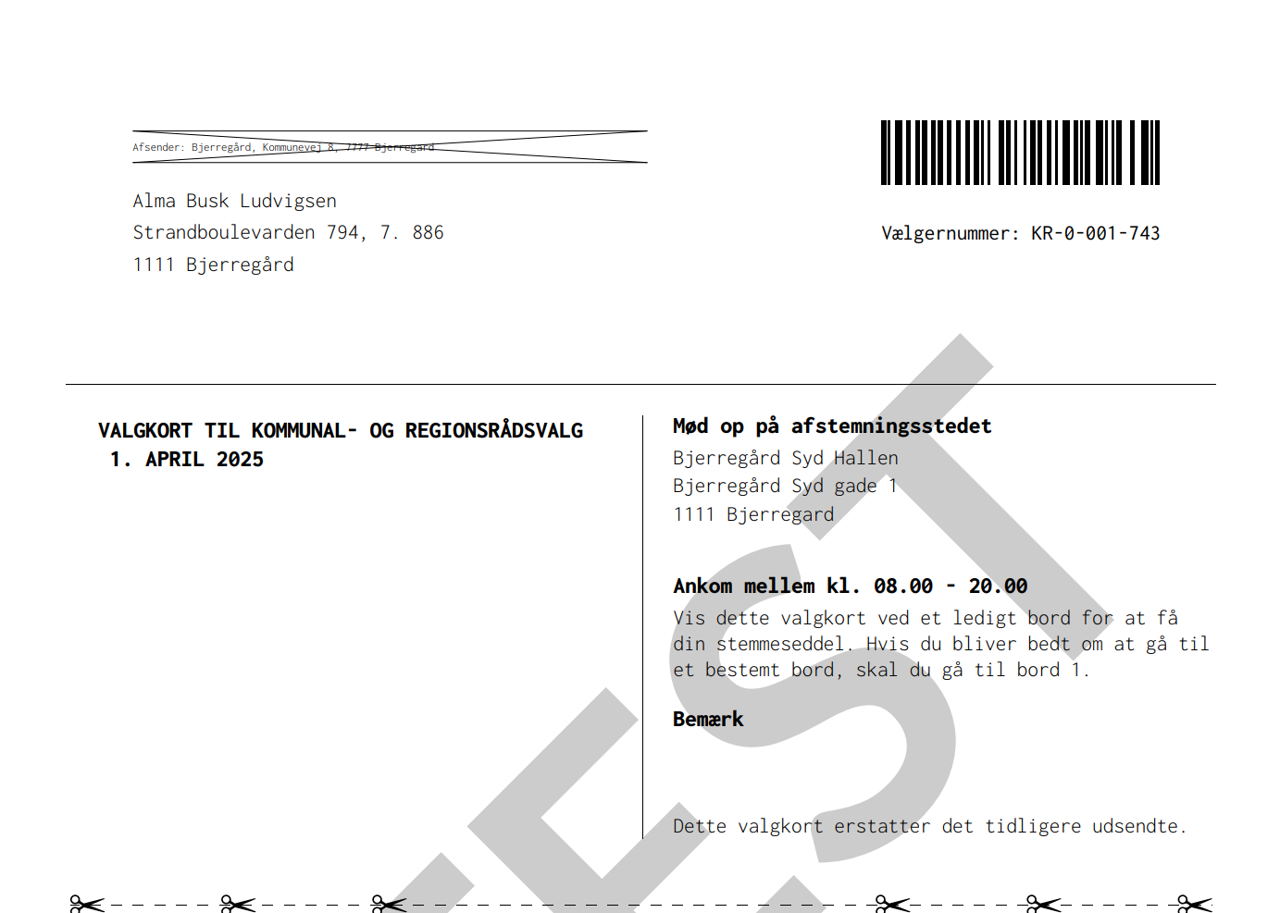 - Her skal du klippe papiret over. Den øverste del er dit valgkort. Det skal du medbringe på afstemningsstedet d. 18. november.