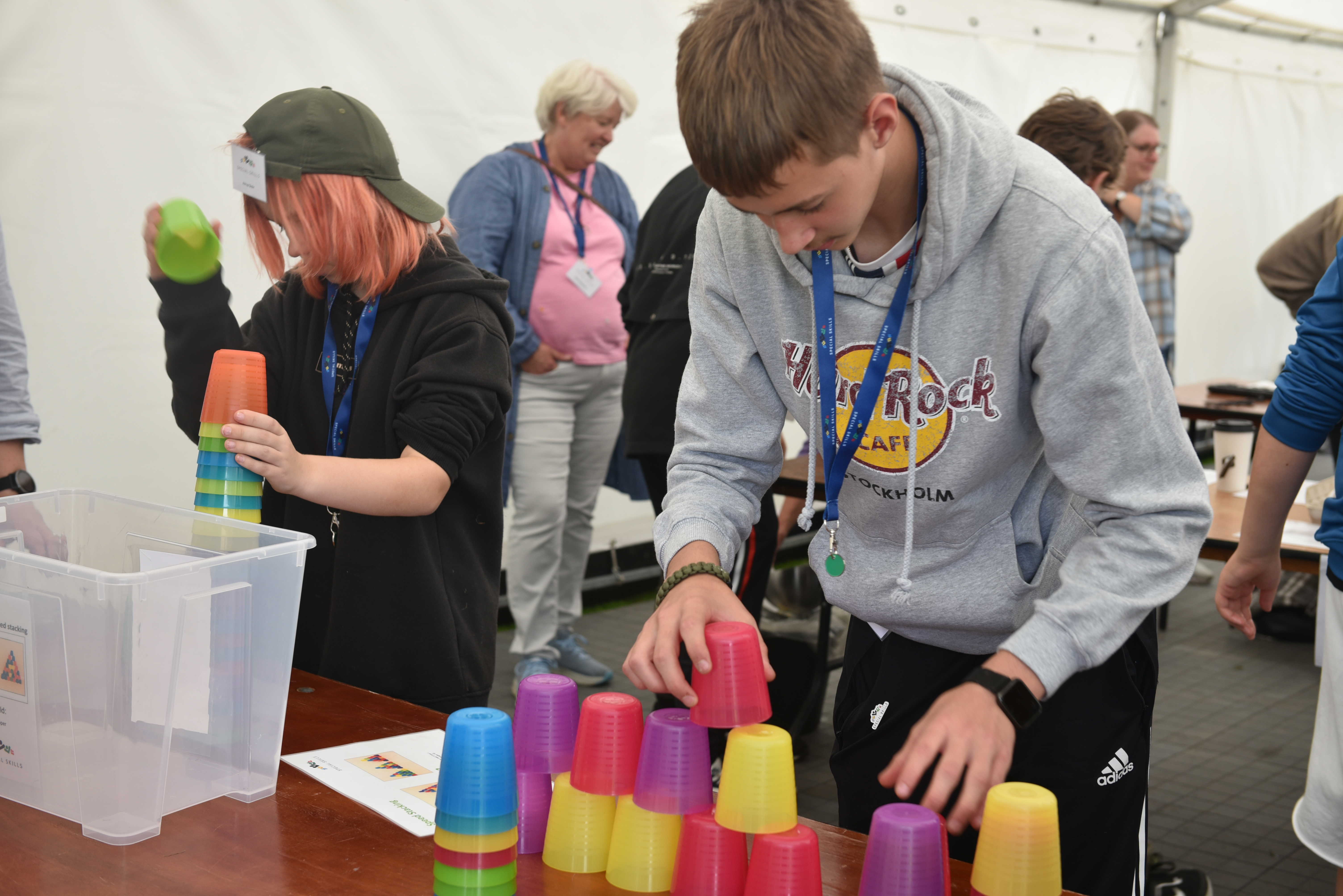 Det sidste Speciel Skills event for i år er blevet afviklet, og det var værterne CSV Randers, der sørgede for at slutte af med maner. Dagen igennem stod den på forskellige konkurrencer, inddelt i tre sværhedsgrader, blandt andet at piske æg, samle tasteture, hænge tøj på bøjler og skifte dæk. Alt sammen udført på tid. De mange konkurrencer var inspireret af opgaver vi gør i dagligdagen, og som kan udføres på trods af forskellige læringsforudsætninger og behov.