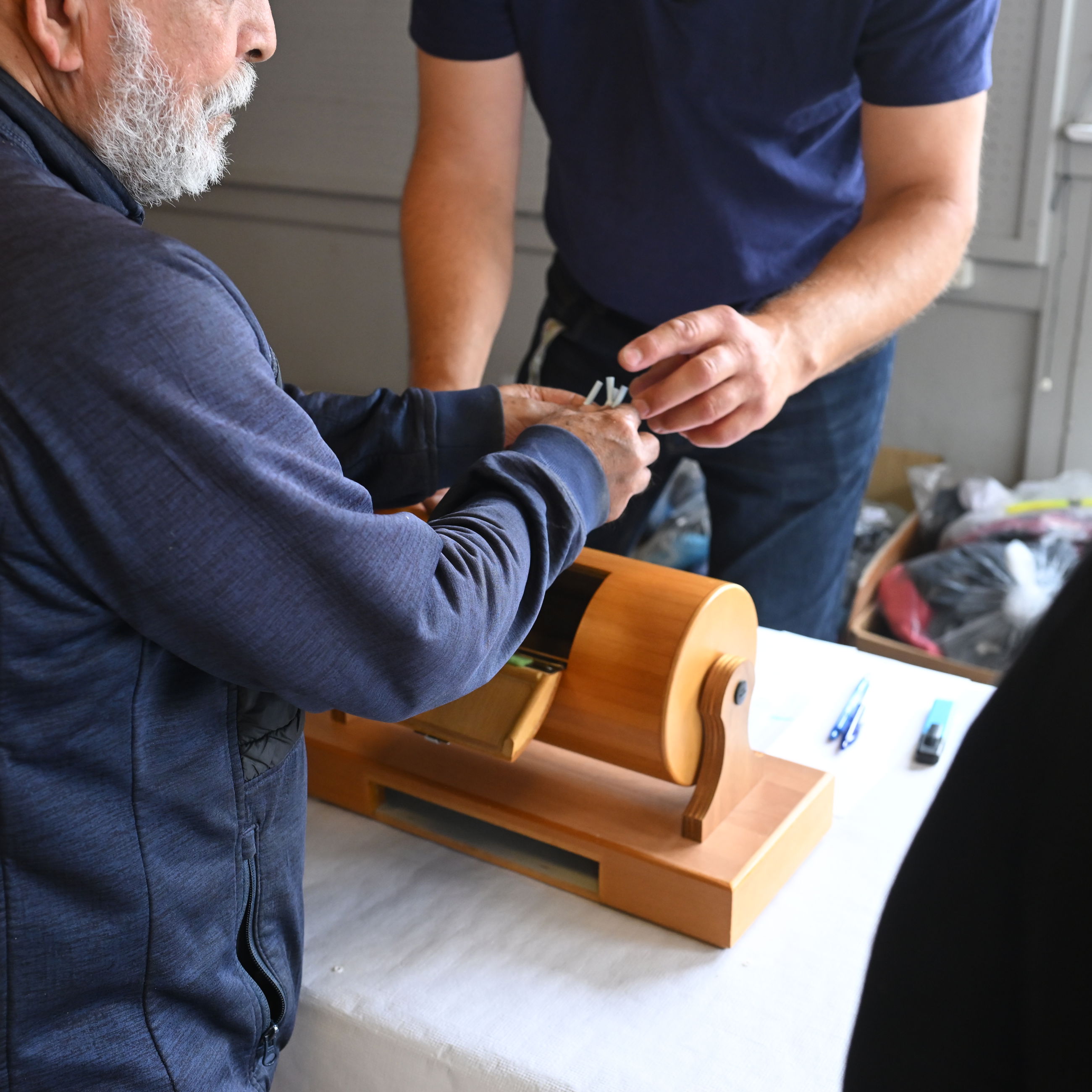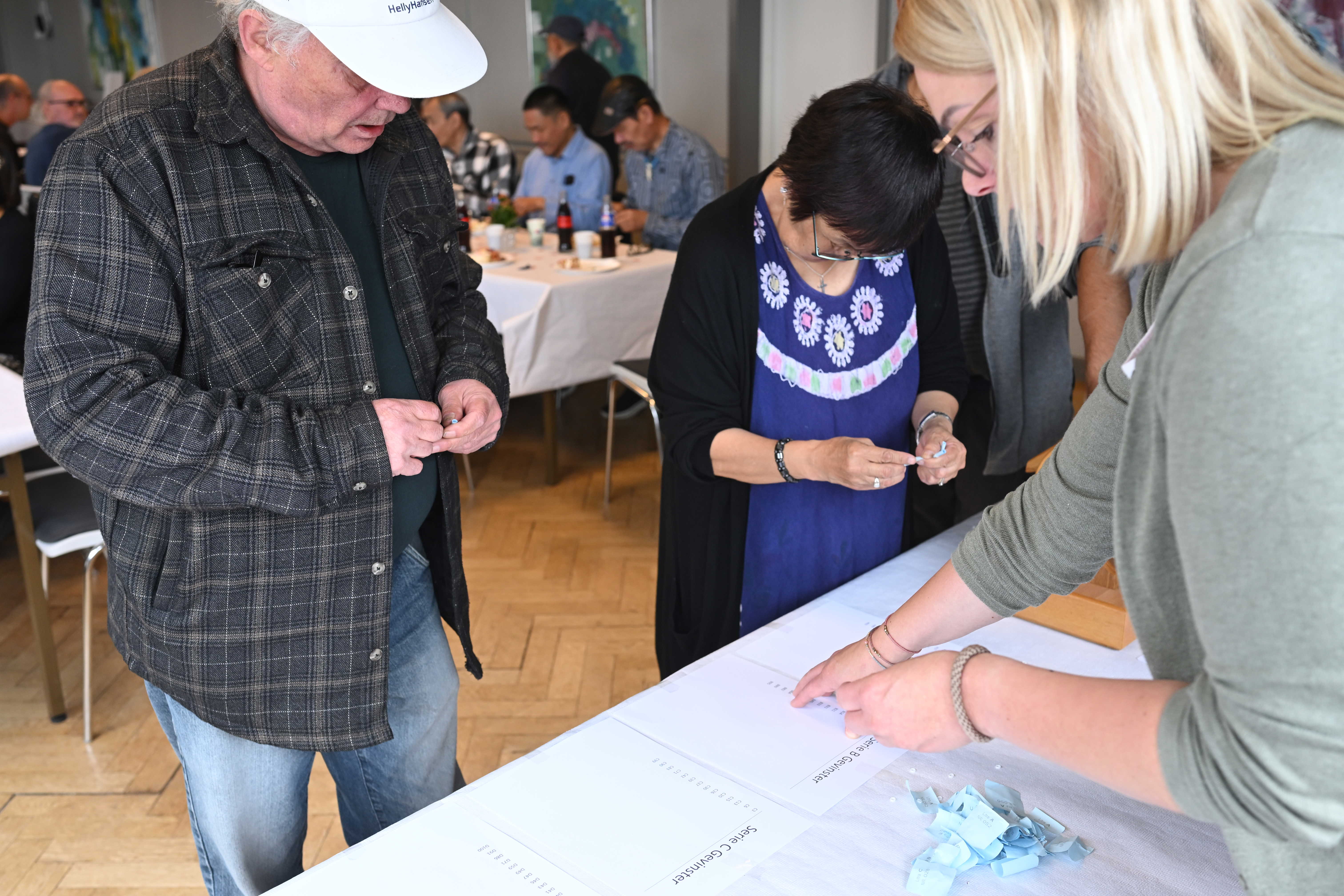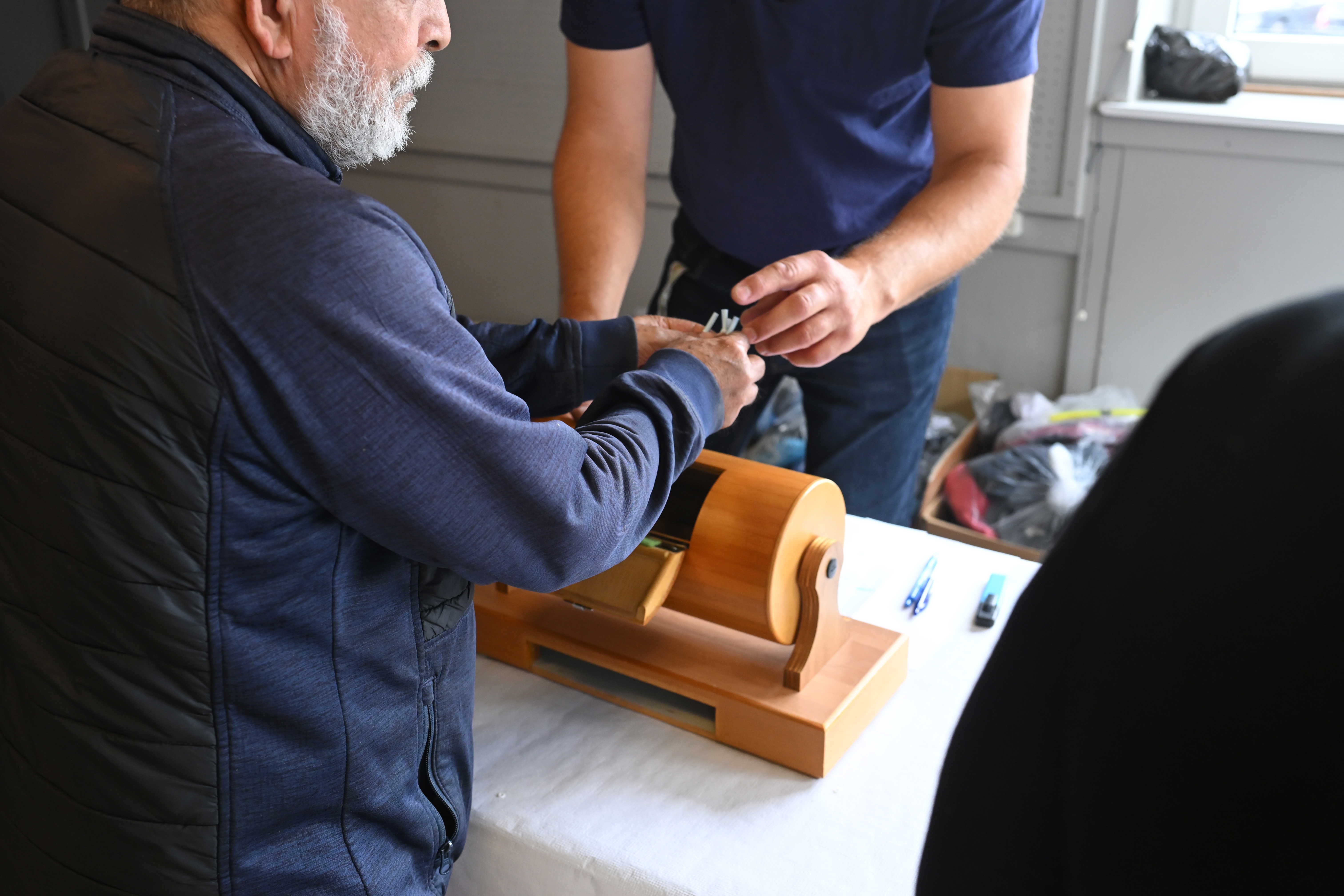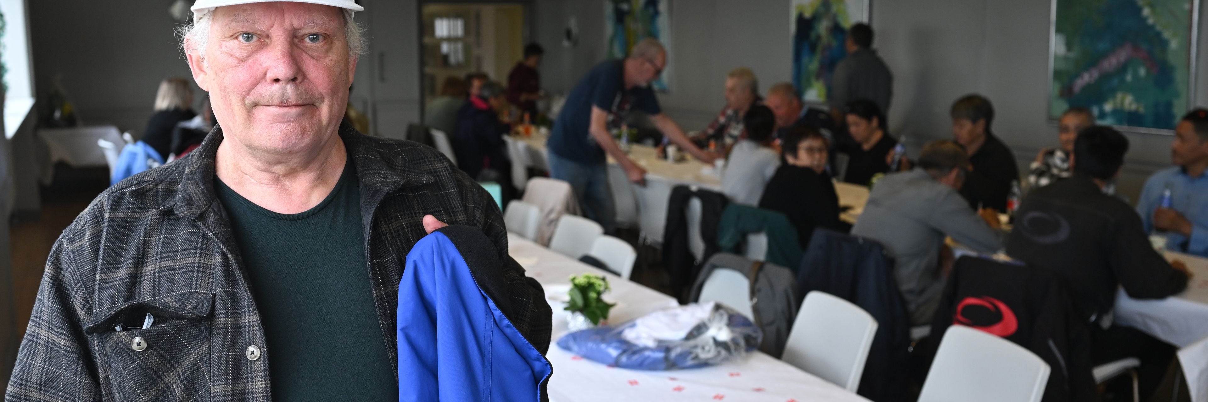 Brian Jensen har været en fast del af Perron 4 siden starten og har gennem årene lagt et stort arbejde i at skaffe midler og sætte gang i aktiviteter for stedets brugere. Til jubilæet havde han heldet med sig i tombolaen og vandt i blå jakke. Foto: Randers Kommune