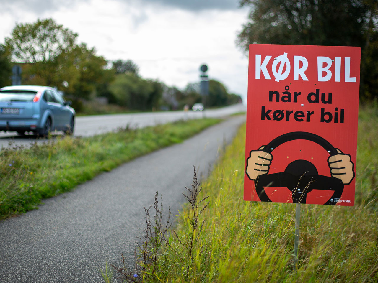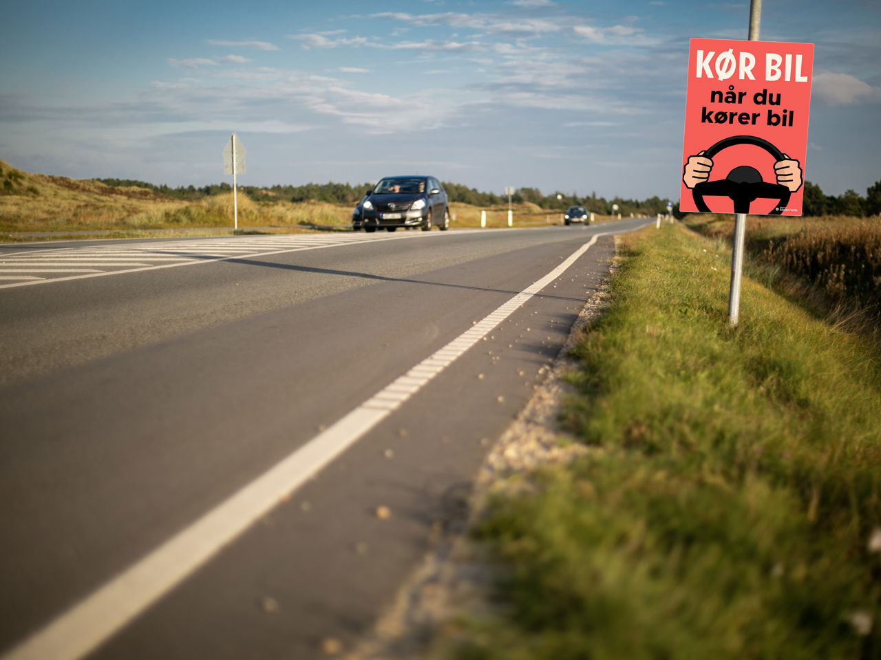 I de kommende uger vil bilisterne i Randers Kommune møde knaldrøde plakater på udvalgte steder. Plakaterne skal blandt andet få flere til at kigge op fra telefonen og holde øje med trafikken.