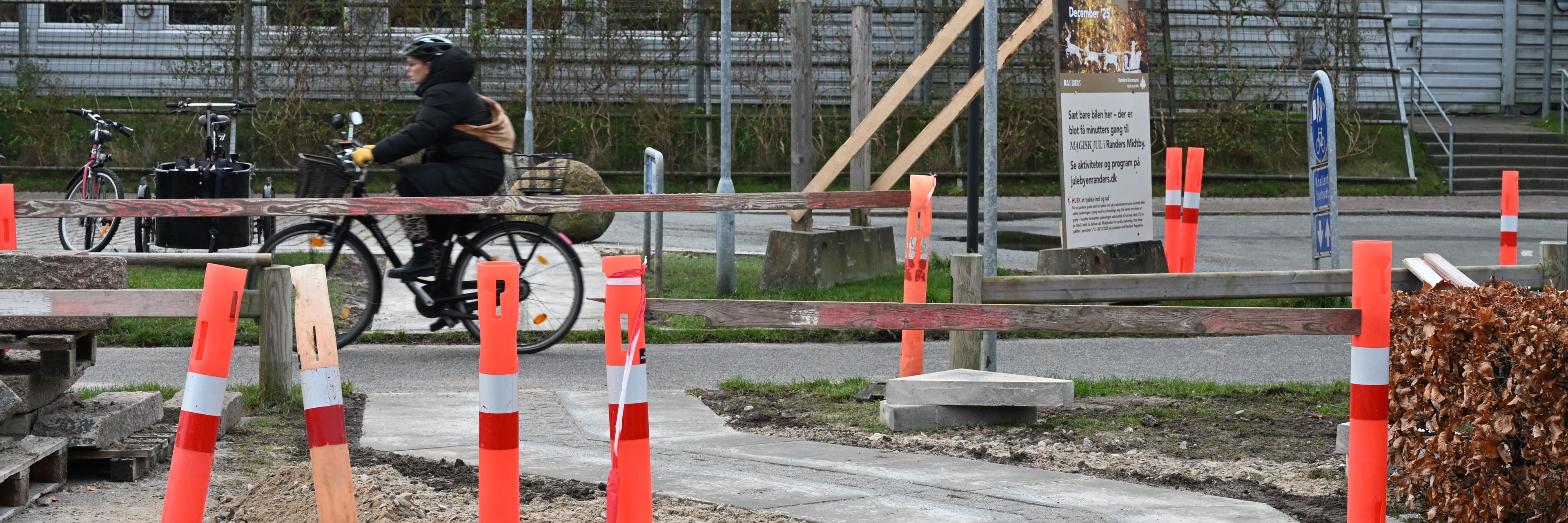 Entreprenørerne er i øjeblikket i gang med at justere parkeringspladsen ved Regnskoven for at skabe mere sikre og overskuelige forhold for både bilister, cyklister og fodgængere.