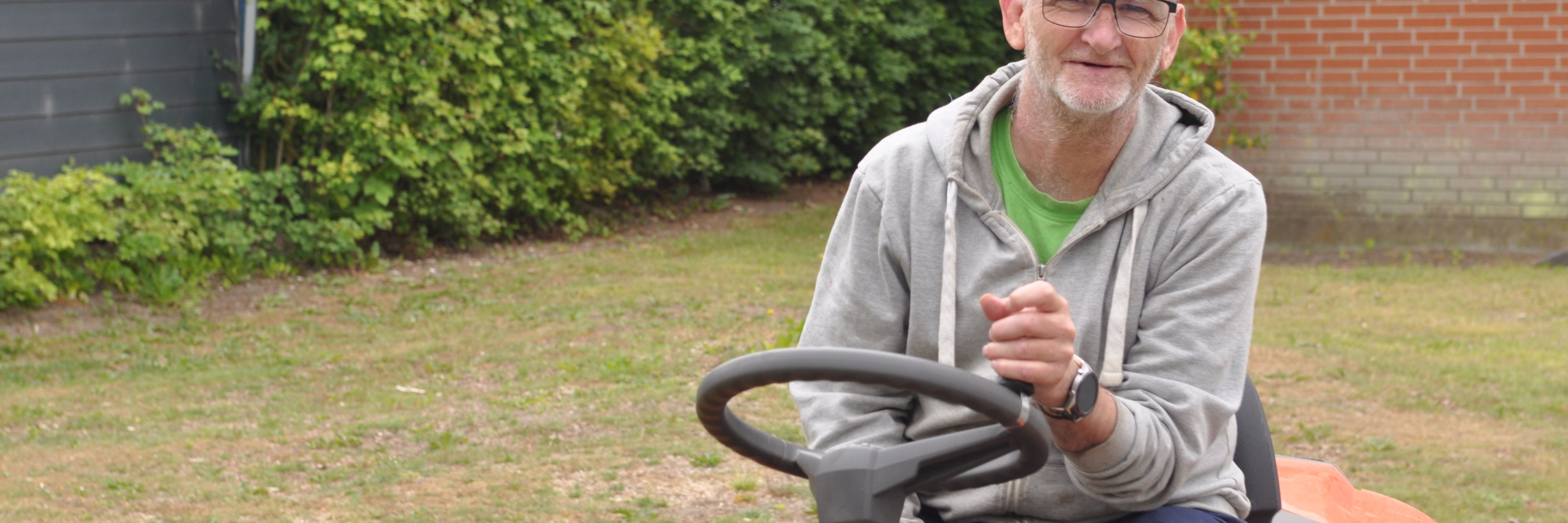 Tirsdag er en ganske særlig dag for 53-årige Peter Chalmer Rasmussen, beboer på Spentrup Ældrecenter. Her hjælper han nemlig ældrecentrets tekniske servicemedarbejder med forskelligt havearbejde - ofte at slå græs.
