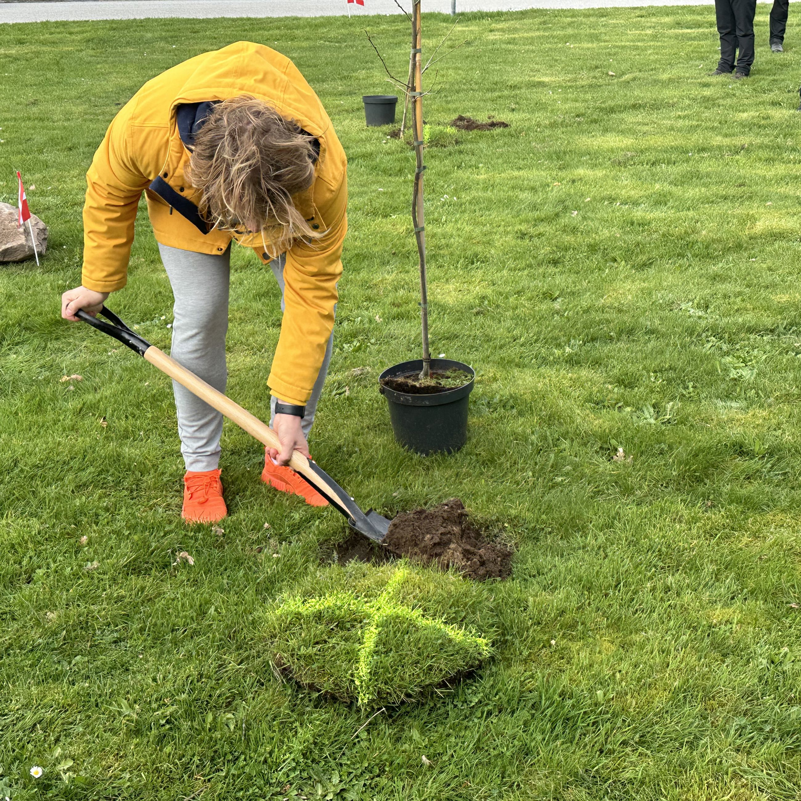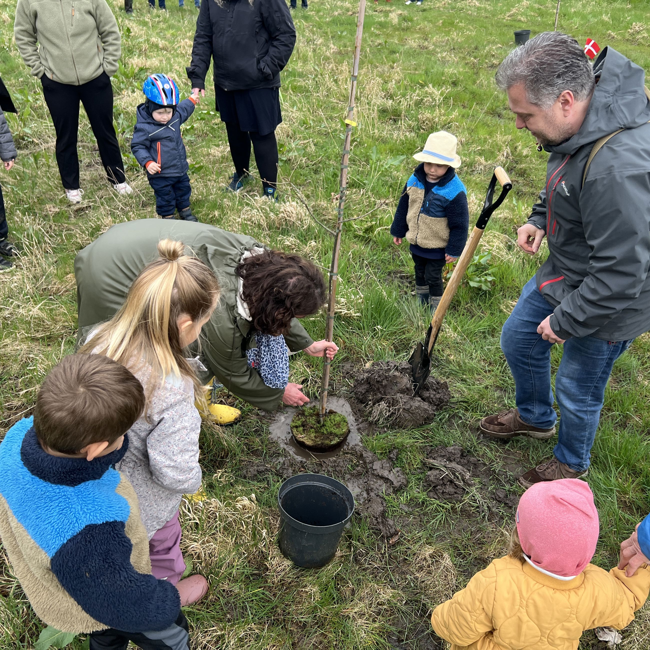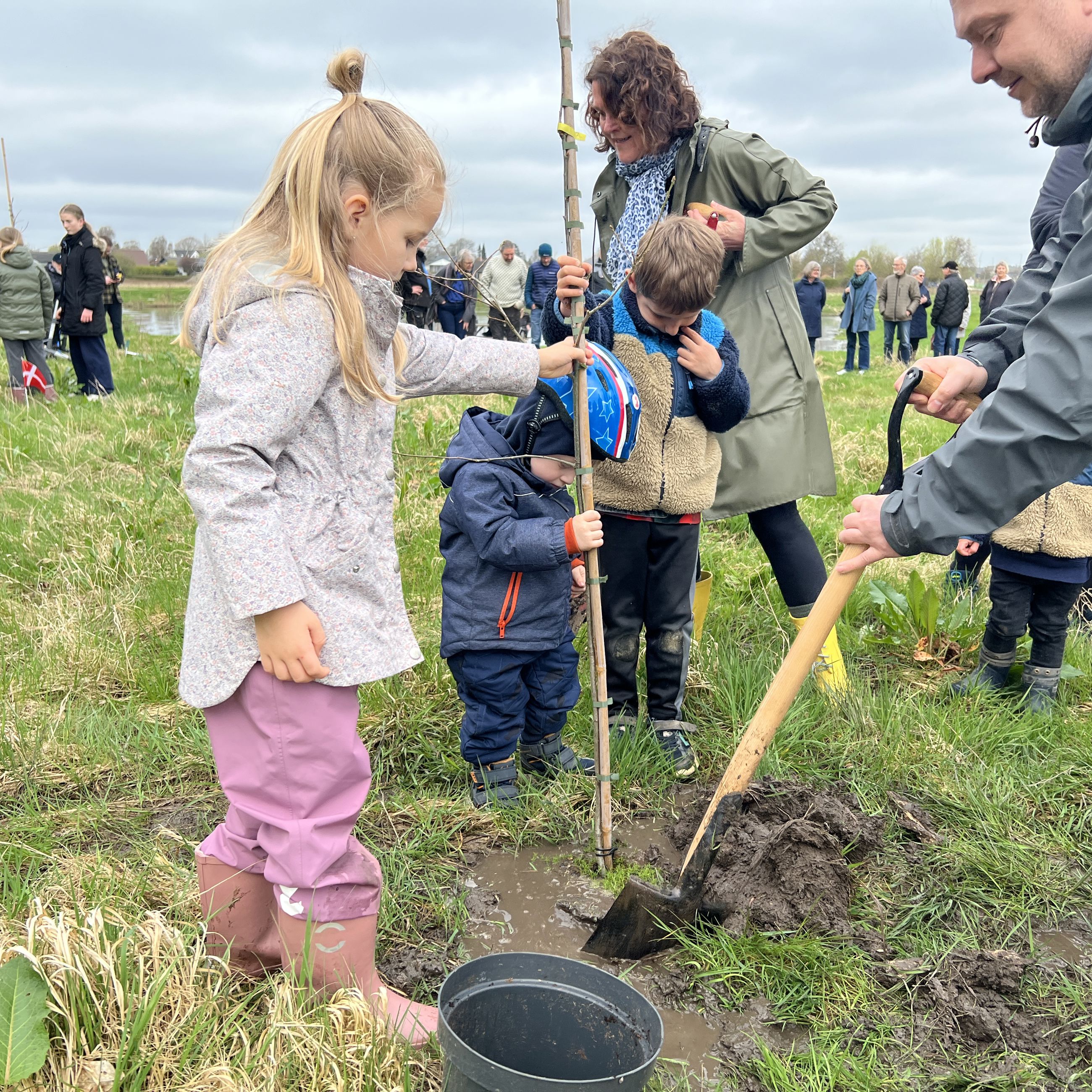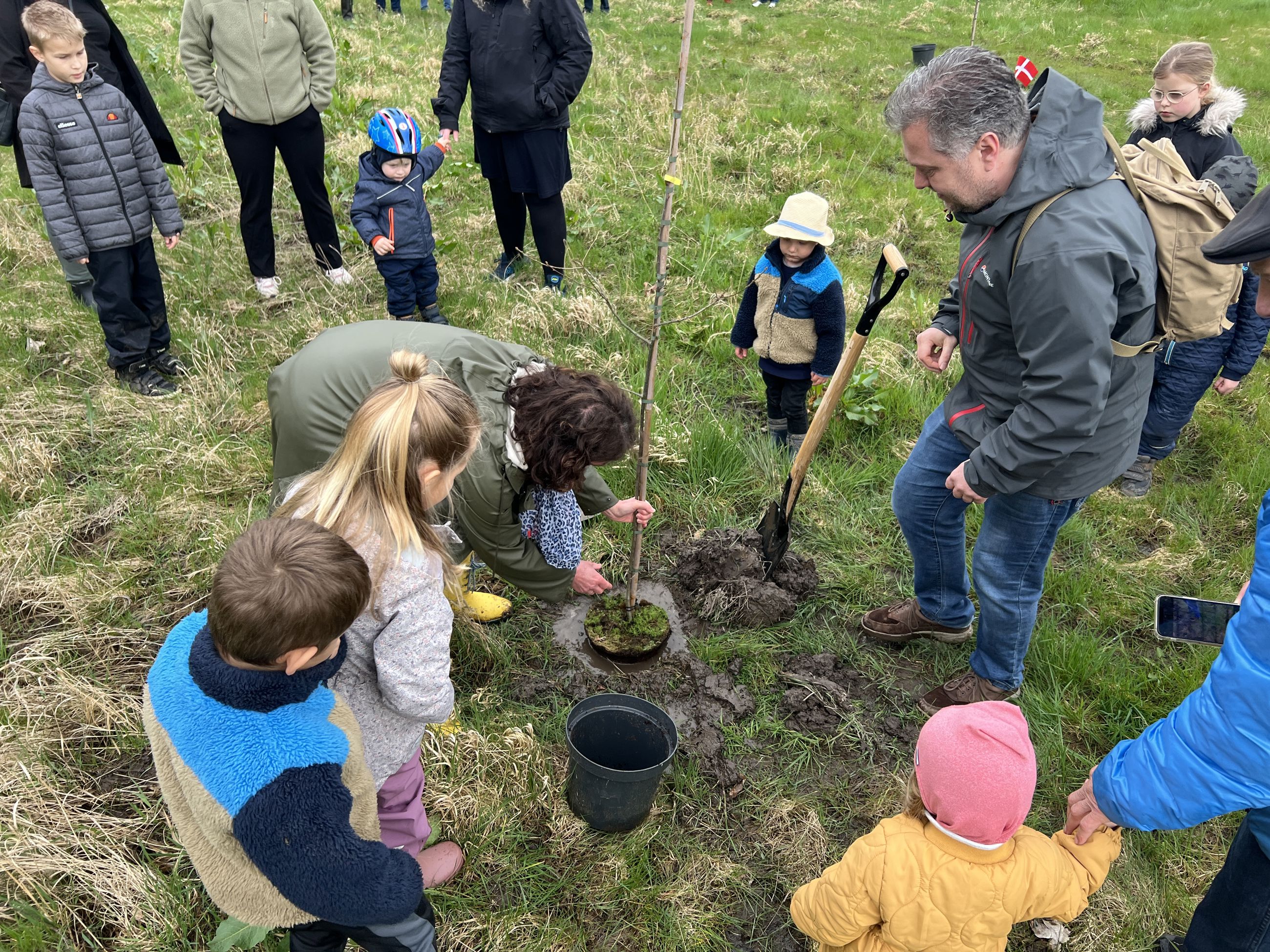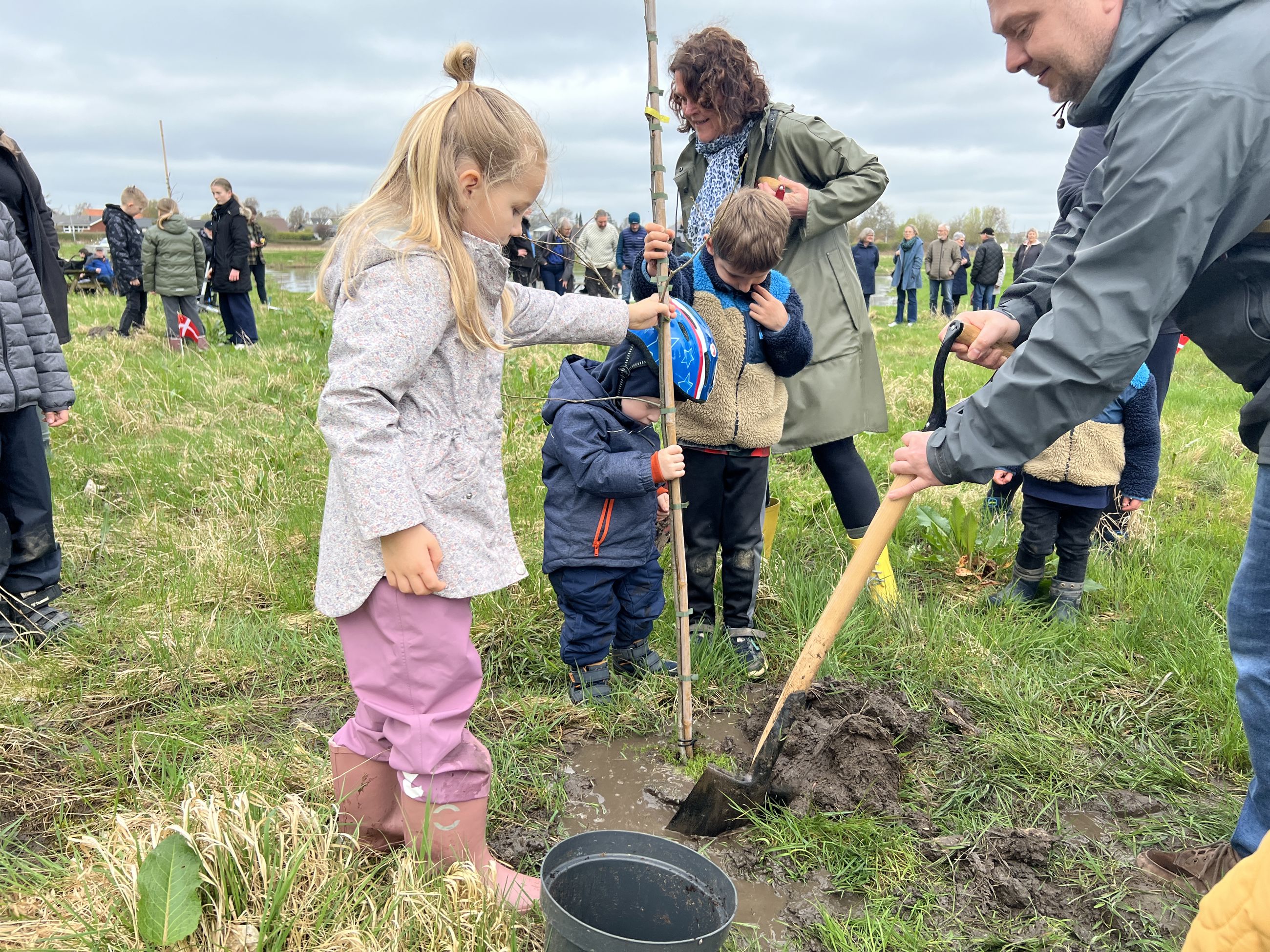 Herefter blev de tre træer plantet med hjælp fra Sophia, som var der sammen med sin mormor.