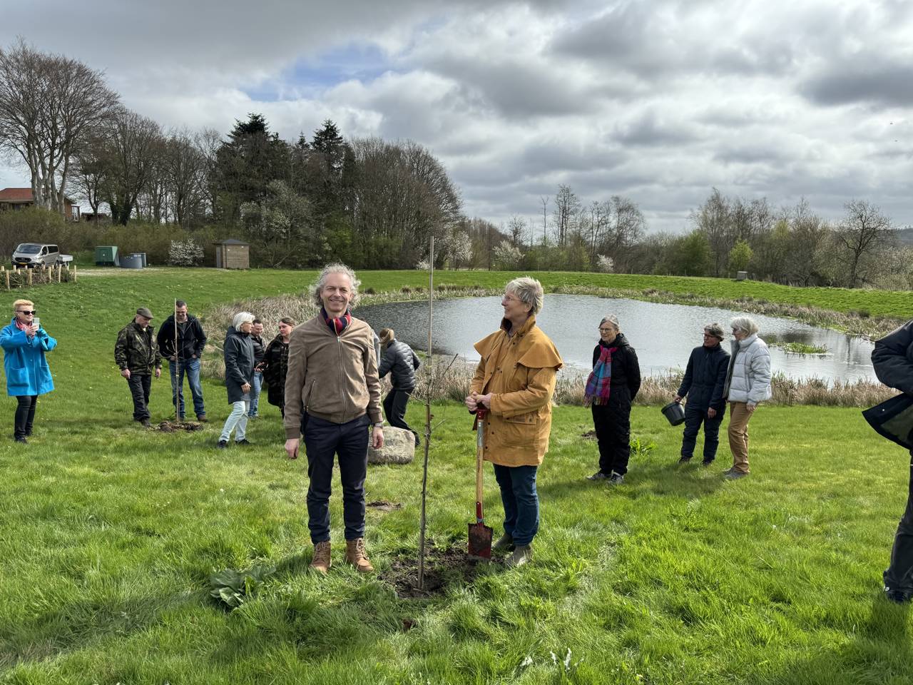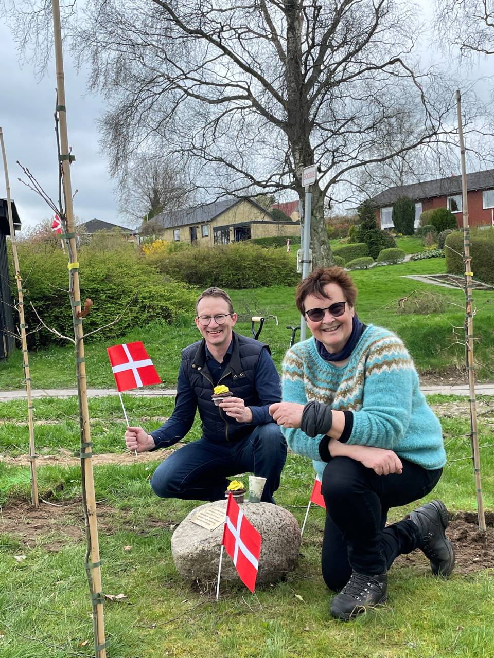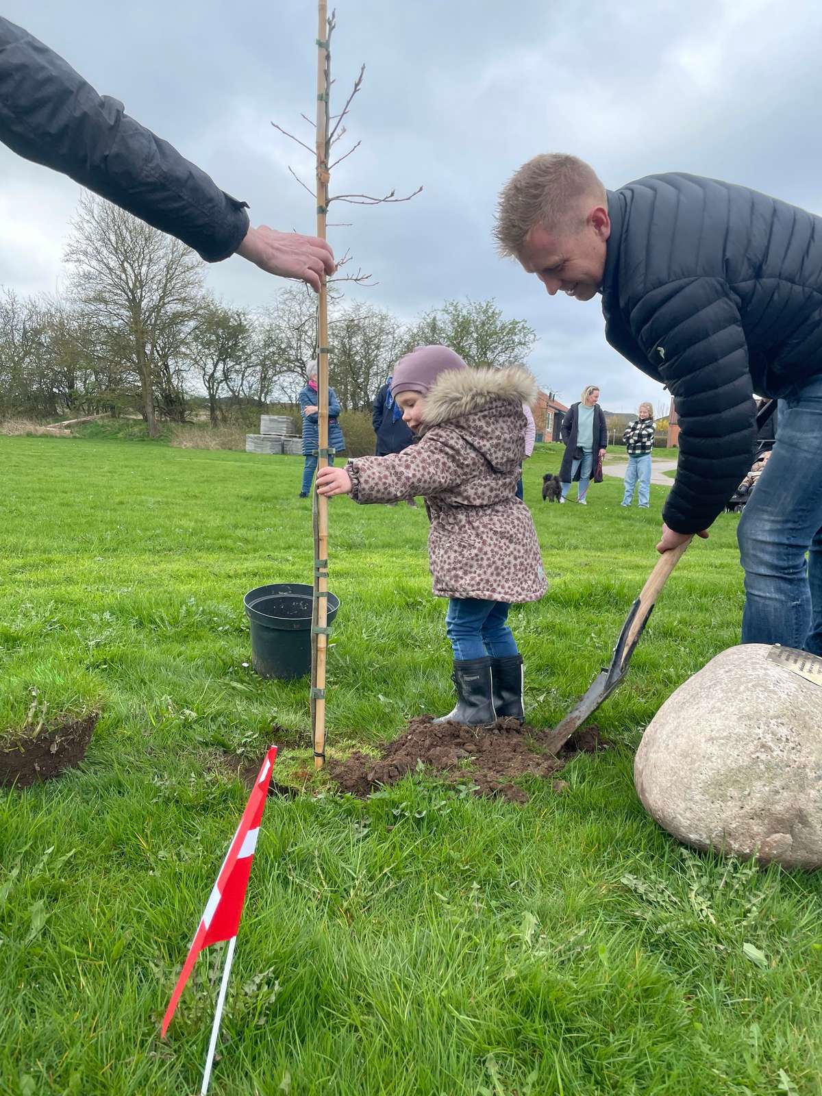 Det første træ blev plantet af Finn Vestergaard fra Aktivitetsparken sammen med datteren.