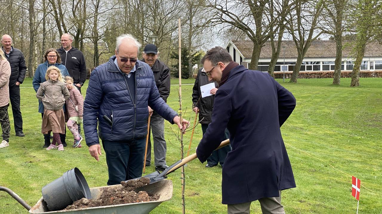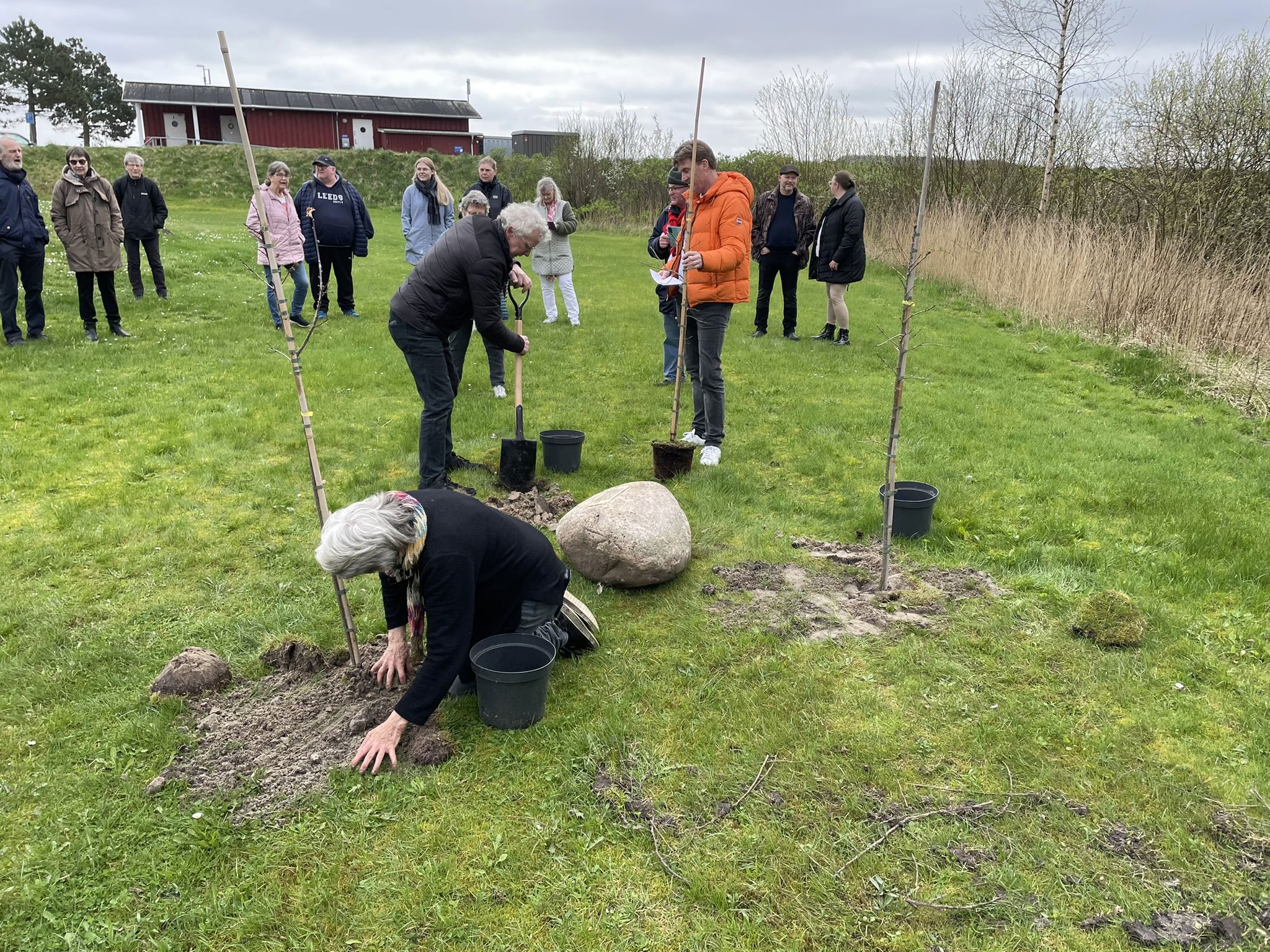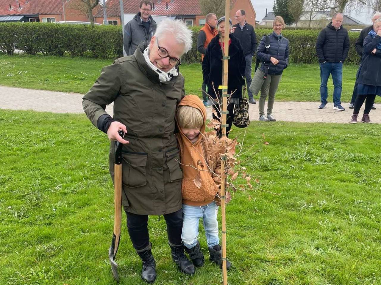 Kirsten Søgård fra Beboerforeningen plantede det andet træ sammen med yngste barnebarnet Ebbe, der går i førskole og tredje og sidste træ blev sat i jorden af Per Tøttrup fra Krolfklubben.