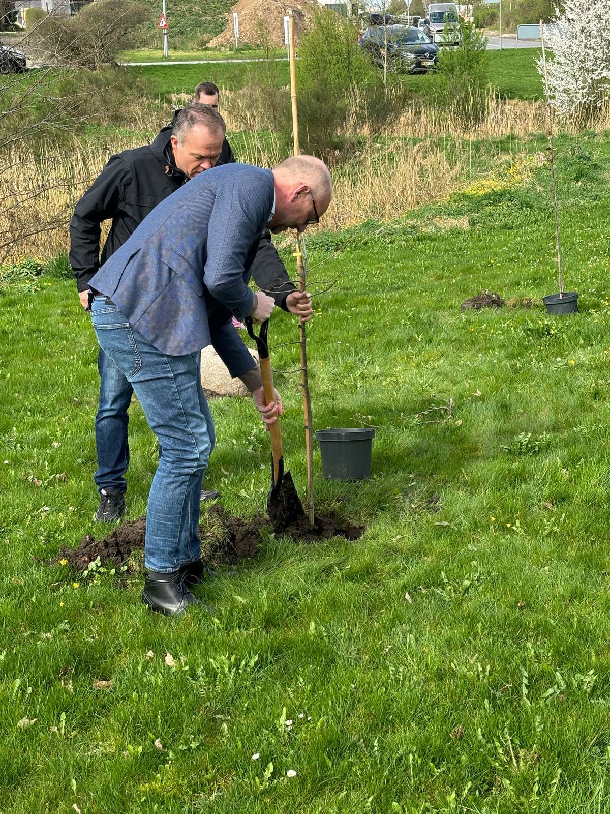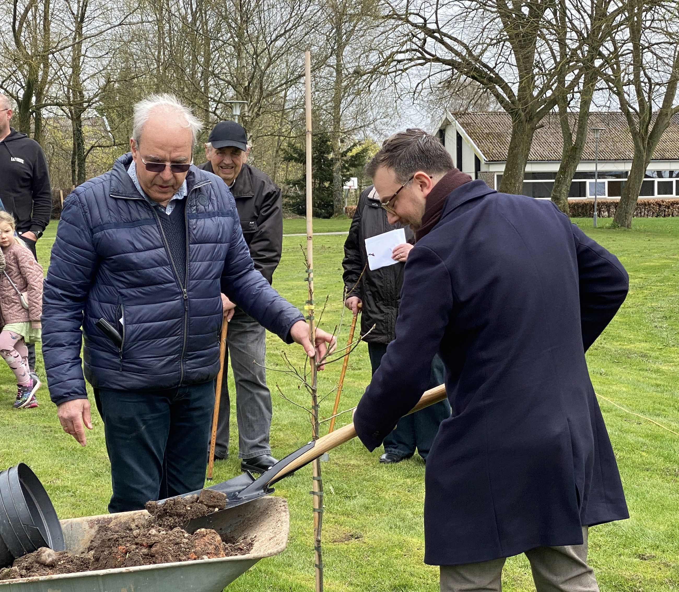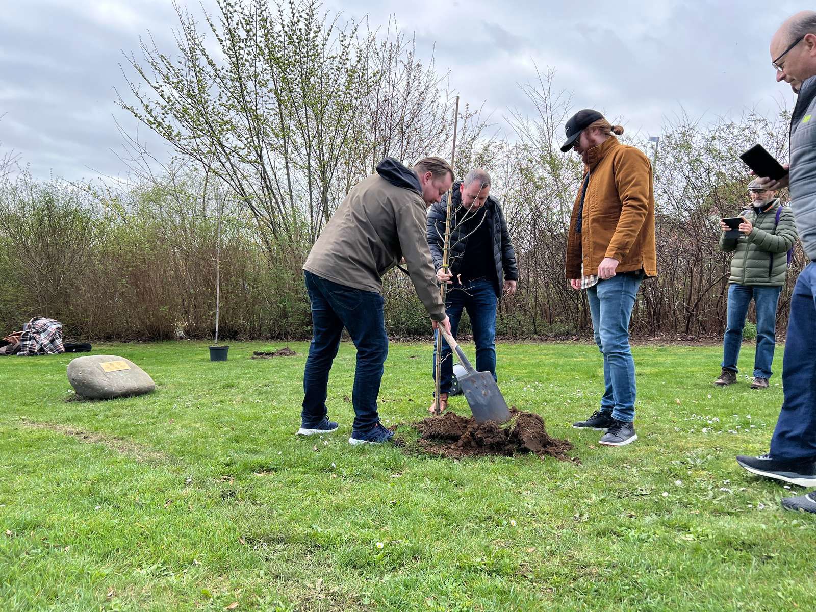 Kirsten Søgård fra Beboerforeningen plantede det andet træ sammen med yngste barnebarnet Ebbe, der går i førskole og tredje og sidste træ blev sat i jorden af Per Tøttrup fra Krolfklubben.
