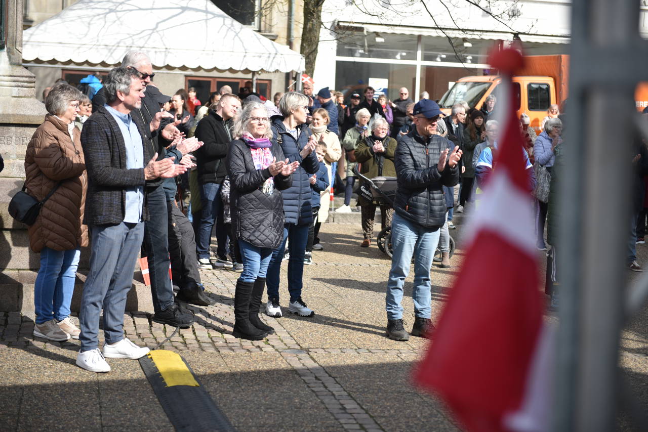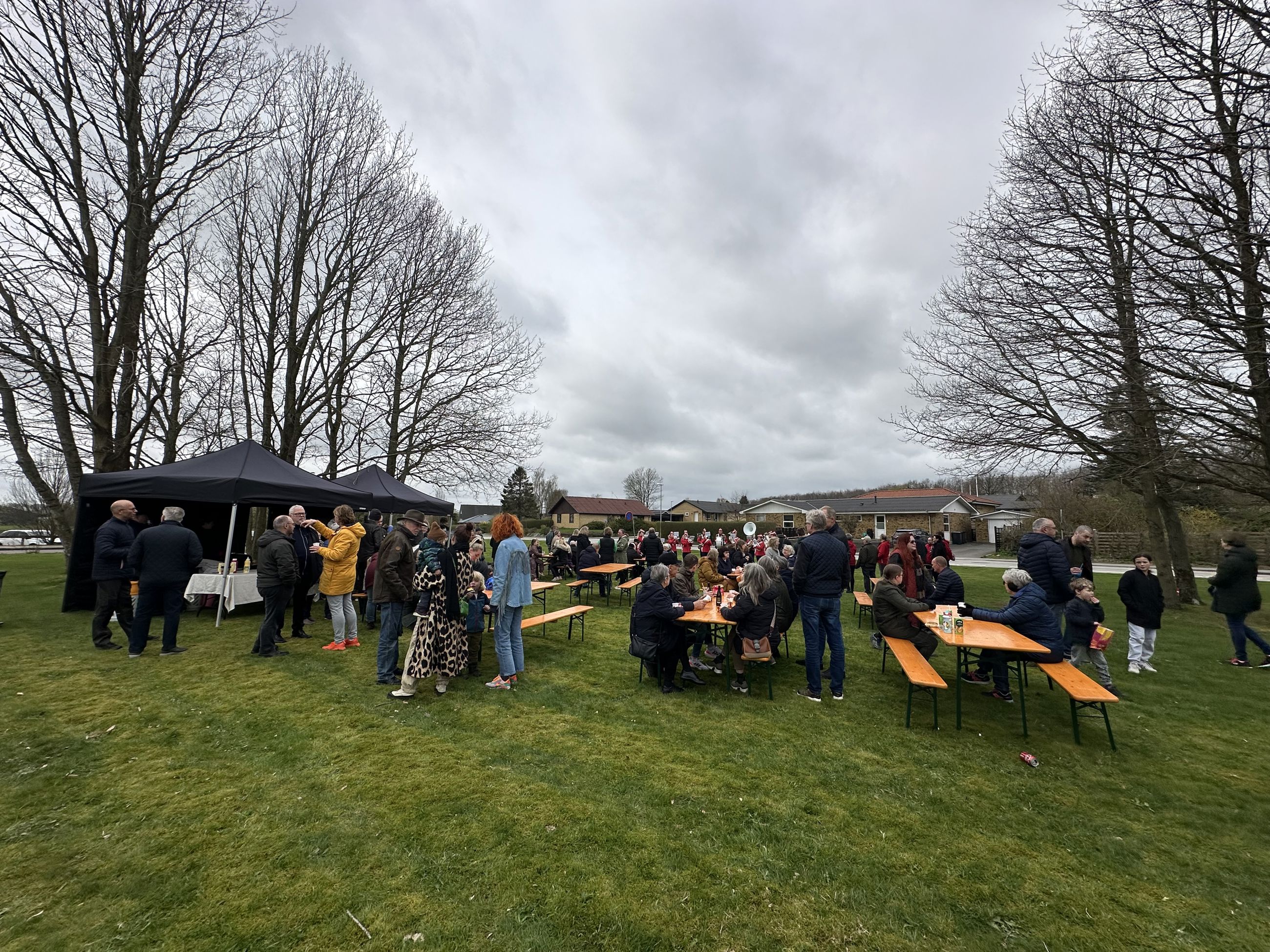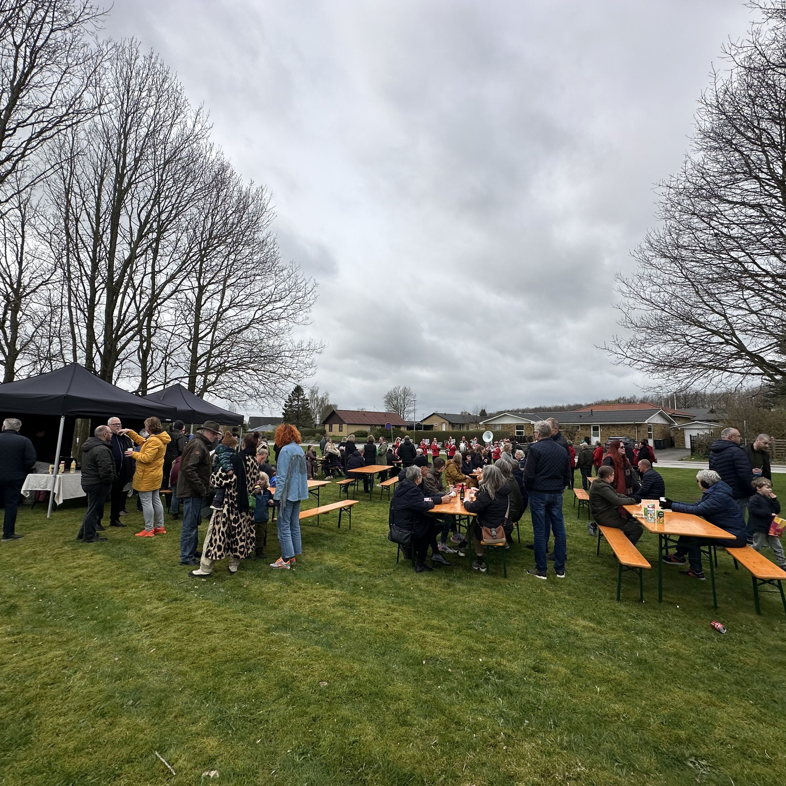 Selvom solen endnu ikke var kommet rigtigt frem på himlen sang de mange fremmødte 'Det er i dag et vejr - et solskinsvejr', der er kendt fra både Højskolesangbogen og Kim Larsens fortolkning.
