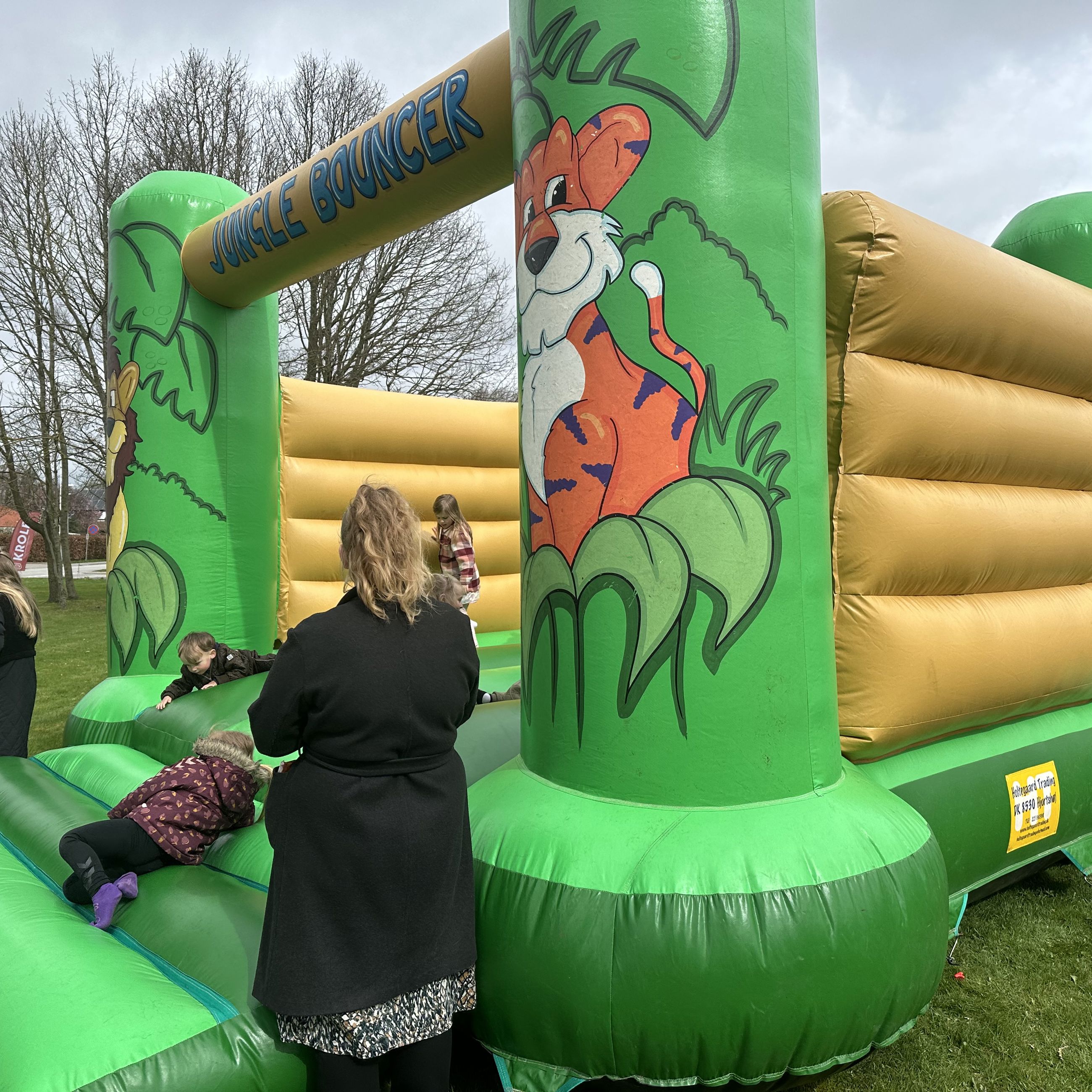 Bagefter gik turen ind i centret til kage, børneloppemarked og hoppeborge.