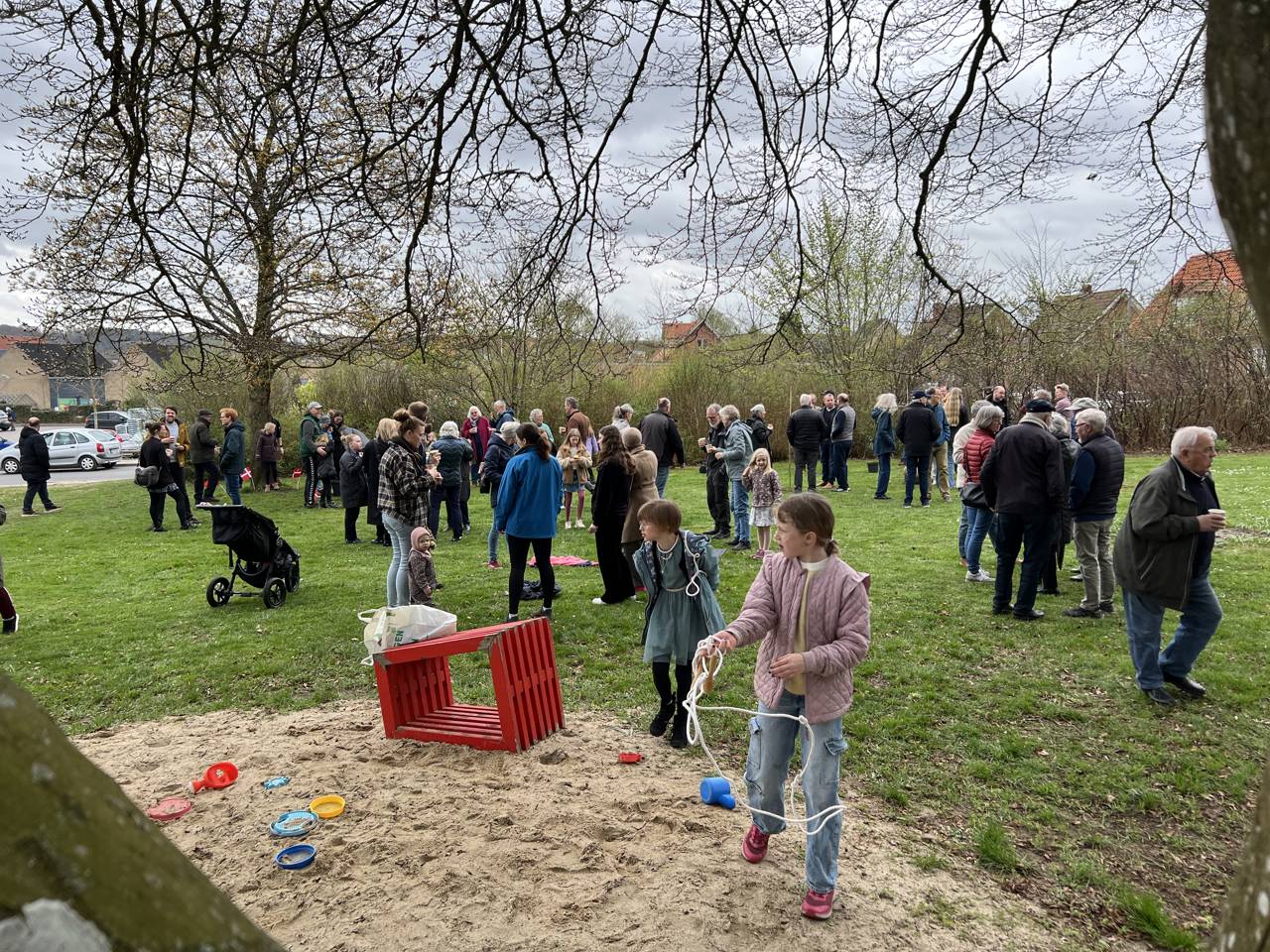 Den lokale brandstation var gået sammen med idrætsforeningen IF-Fjorden for at skabe en herlig dag i Øster Tørslev. Med hjælp fra Ommersyssel Koret var der fællessang. Byrådsmedlem Jesper Gade og idrætsforeningens formand Sanne Andersen stod for både taler og træplantning. Fremmødte børn og voksne gav en hjælpende hånd. Den største attraktion for børnene var helt klart brandbilerne - men også kagen trak.
