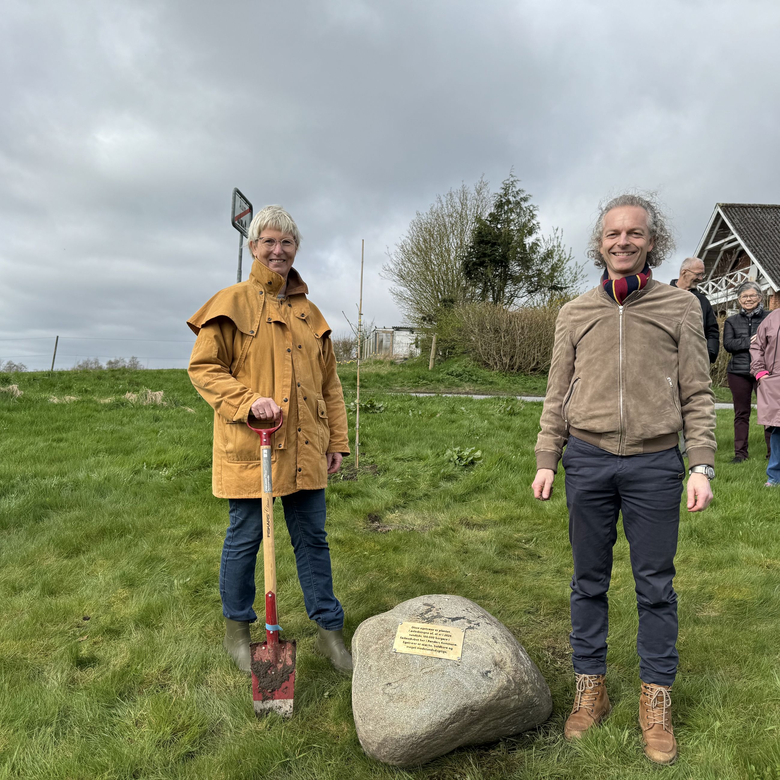 Det er VERDO og ELRO-fonden, der har finansieret træer og sten med plader, samtidig med at de gør klar til selve plantningen.