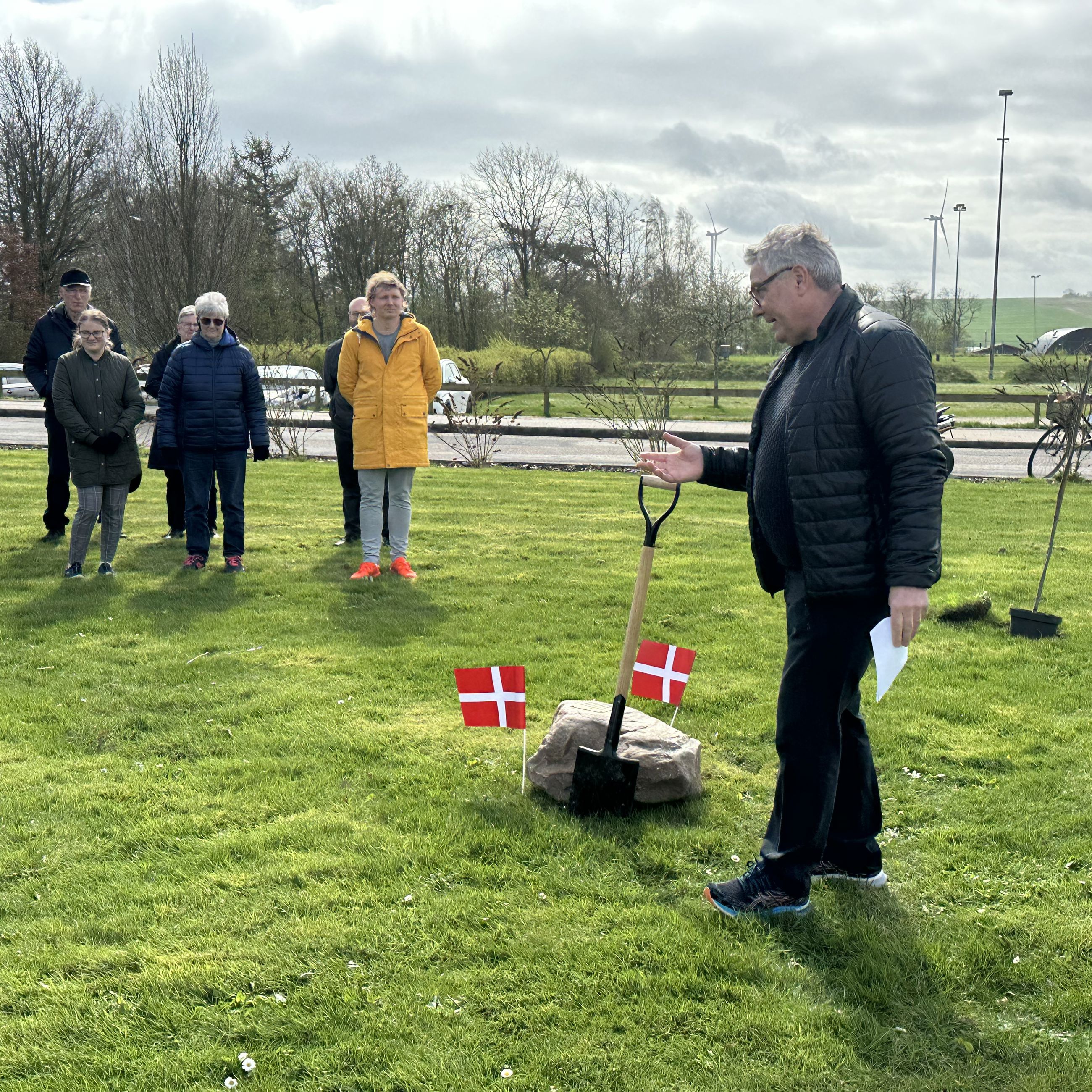 Byrådsmedlem Kasper Fuhr Christensen holdt tale ved træplantningen. Han var glad for at være med til at fejre dagen netop i Gjerlev. "En by med godt fællesskab, aktive og dejlige foreninger og flere steder at mødes".
