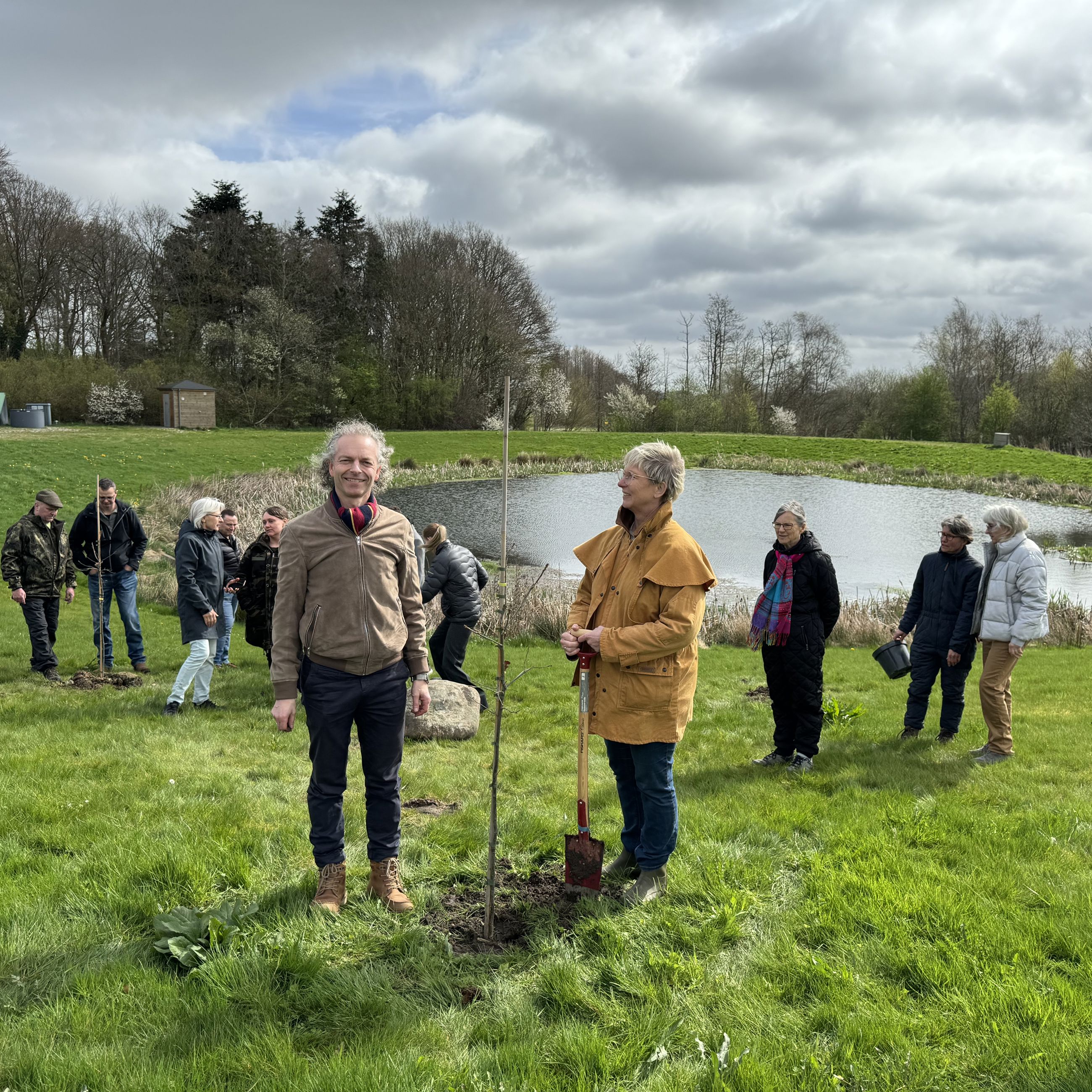 Beboerråd har valgt at plante træerne ved Møllebækstien, som mange borgere i byen benytter. "Dermed minder det folk på gåturene om en god udvikling i kommunen," tilføjer han.