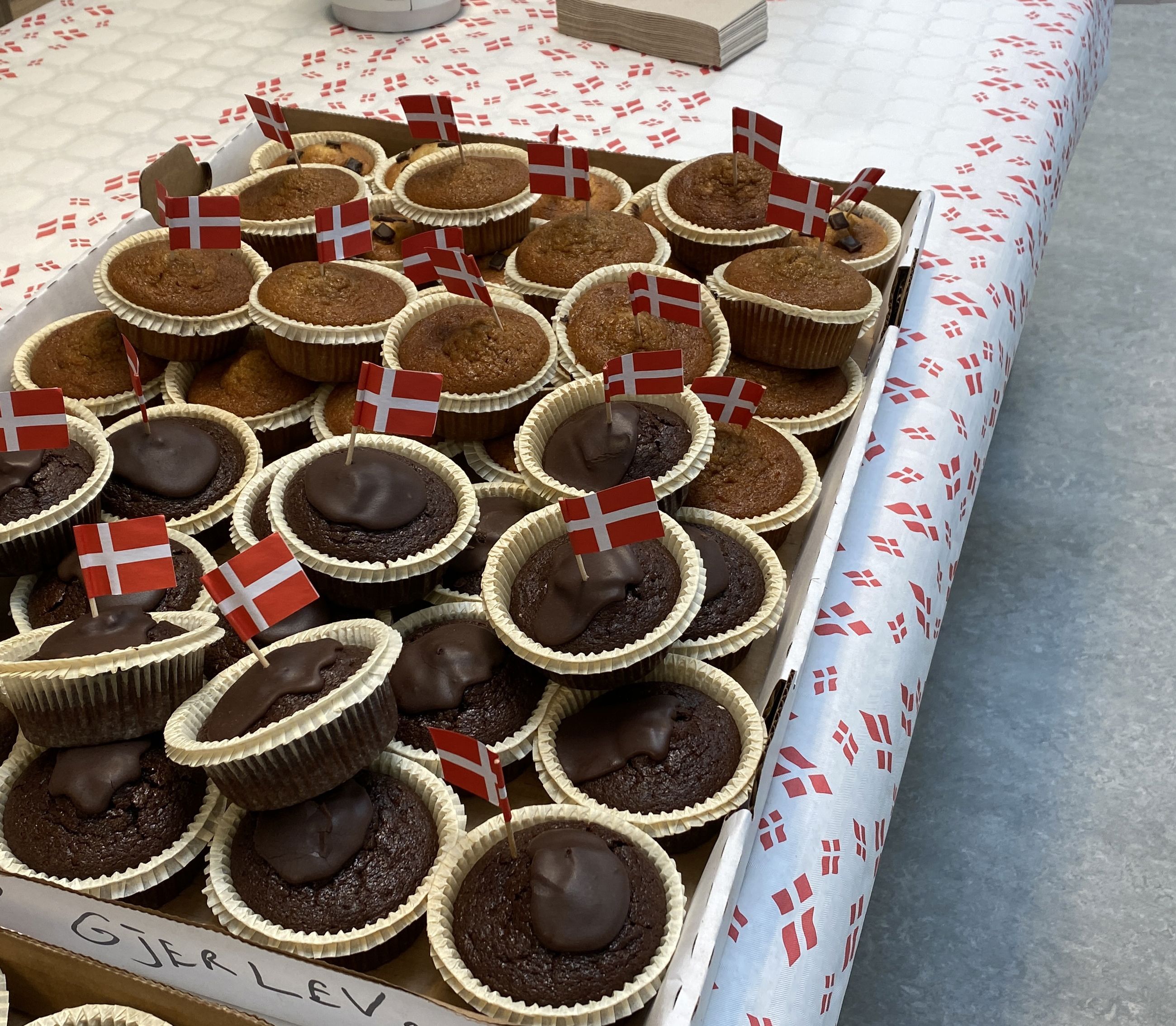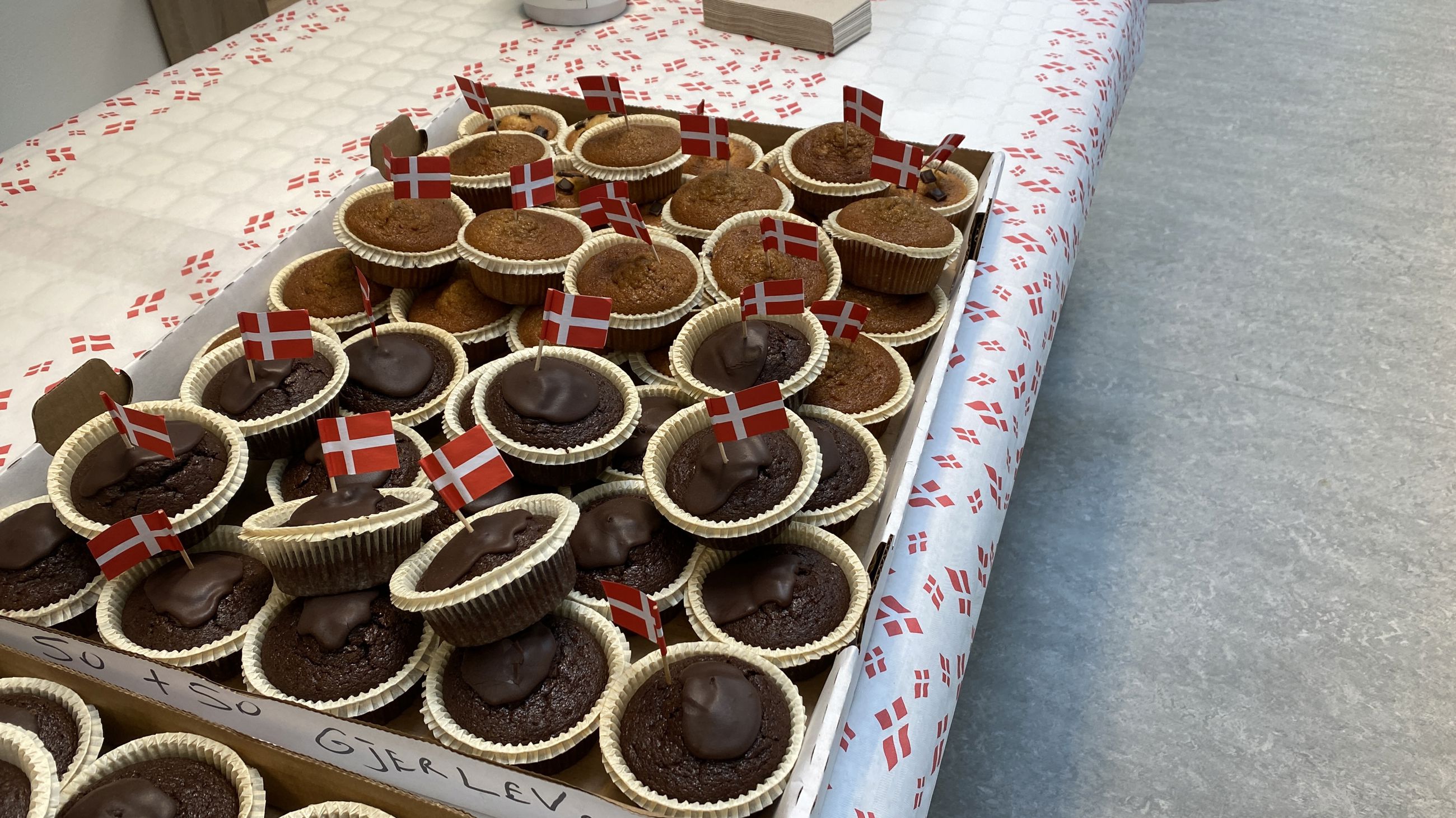 Efter plantningen og klapsalver blev der budt på kaffe og muffins i madpakkehuset med musik og dejligt humør.