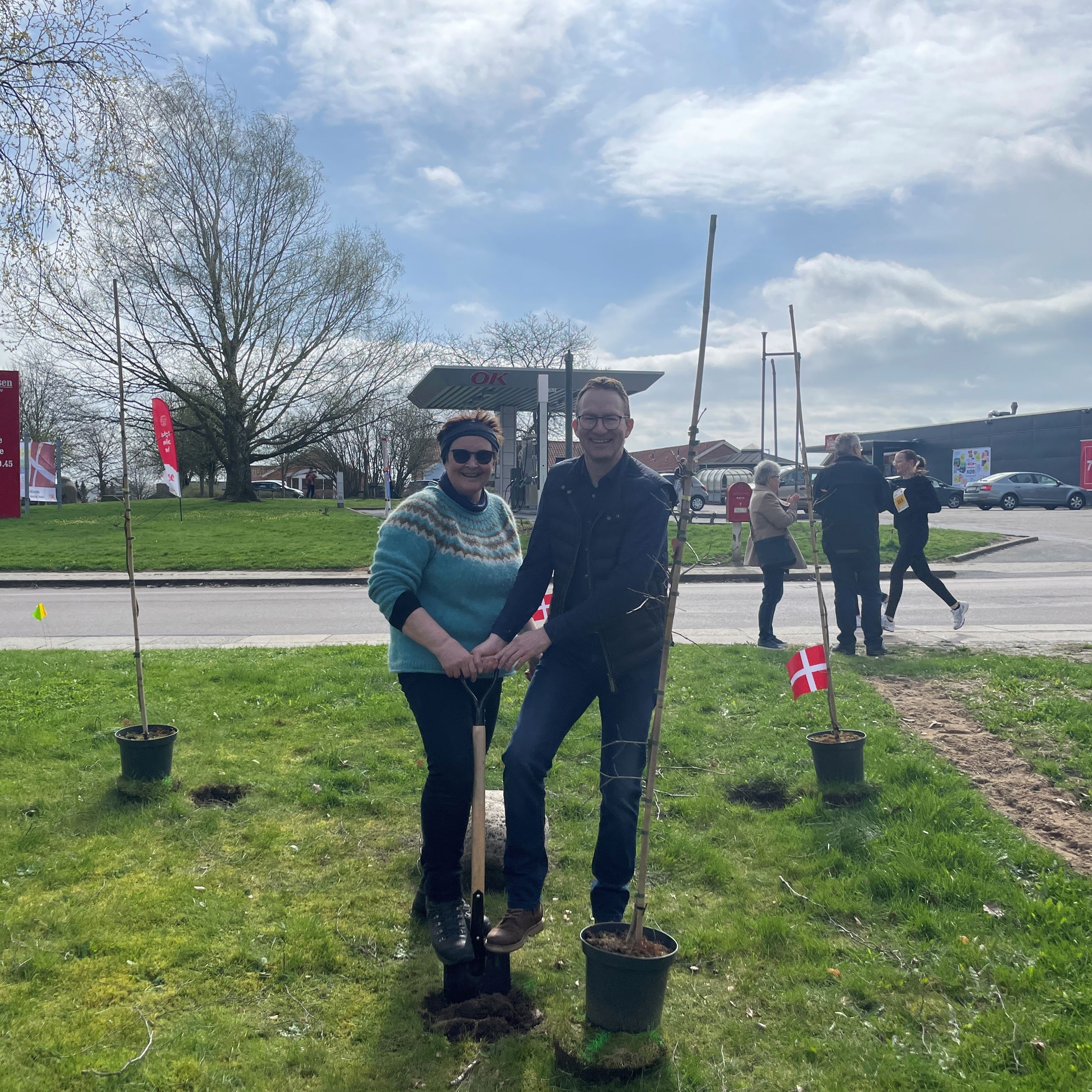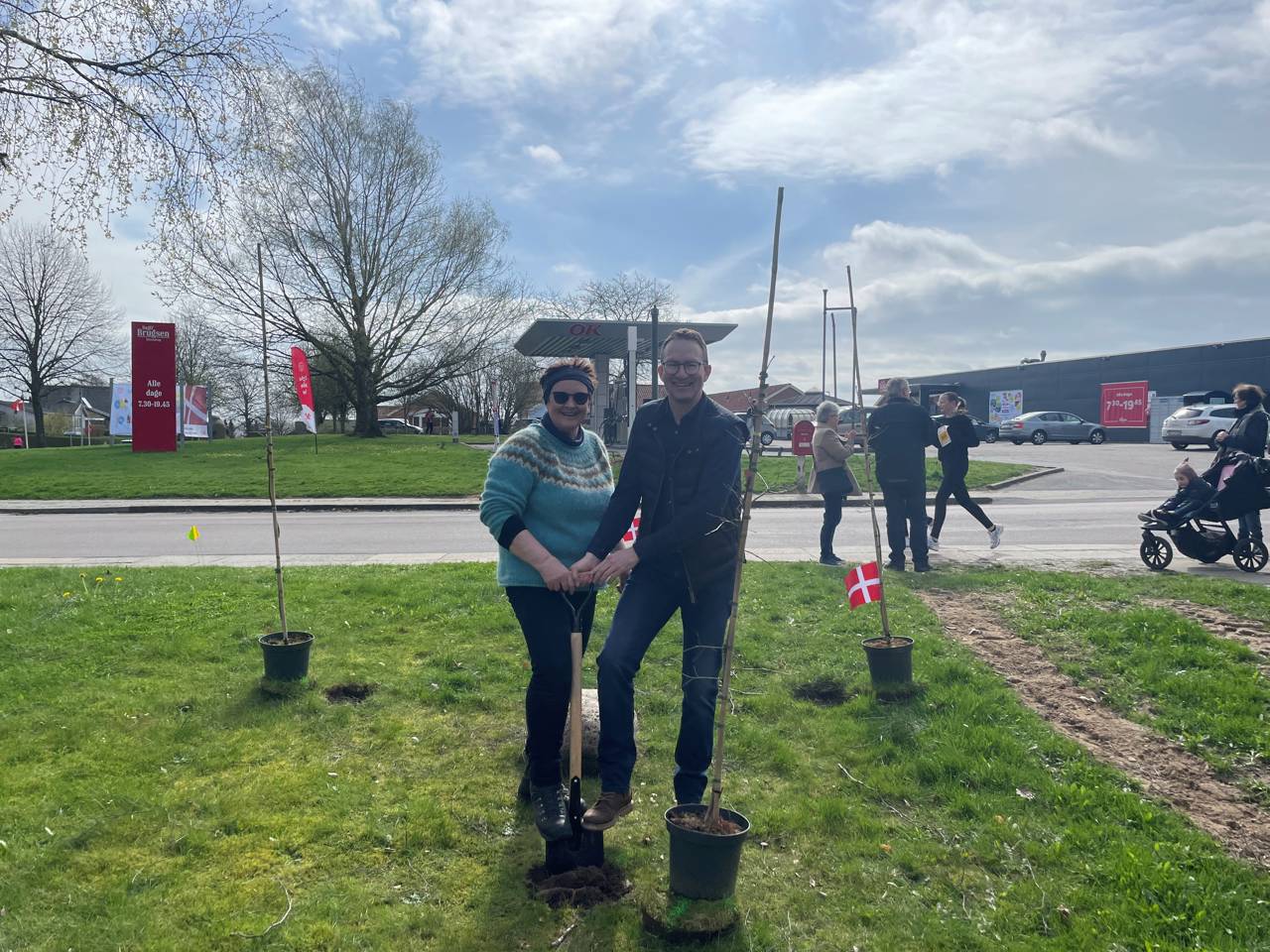 De tre egetræer blev planet i det centrale Gjerlev tæt på Brugsen og det lokale aktivitetscenter, så mange mennesker kan glæde sig over dem.