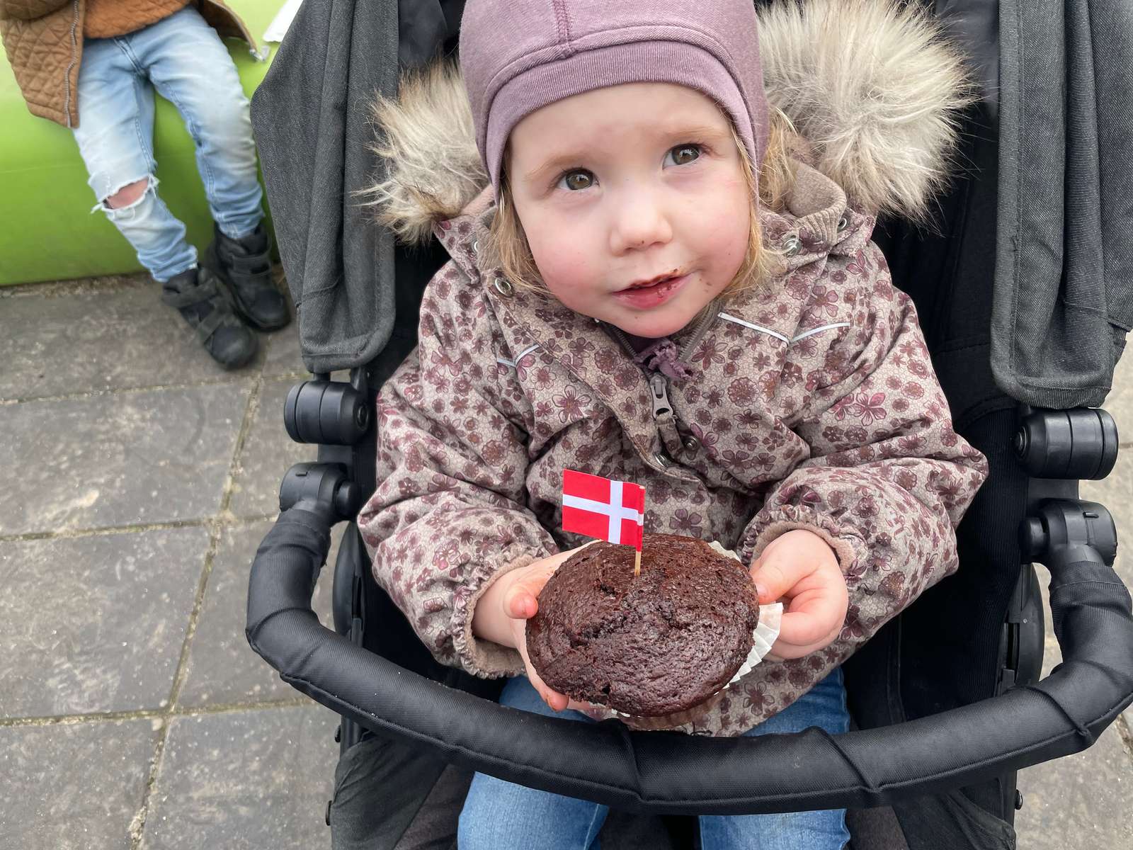 Bagefter gik turen ind i centret til kage, børneloppemarked og hoppeborge.