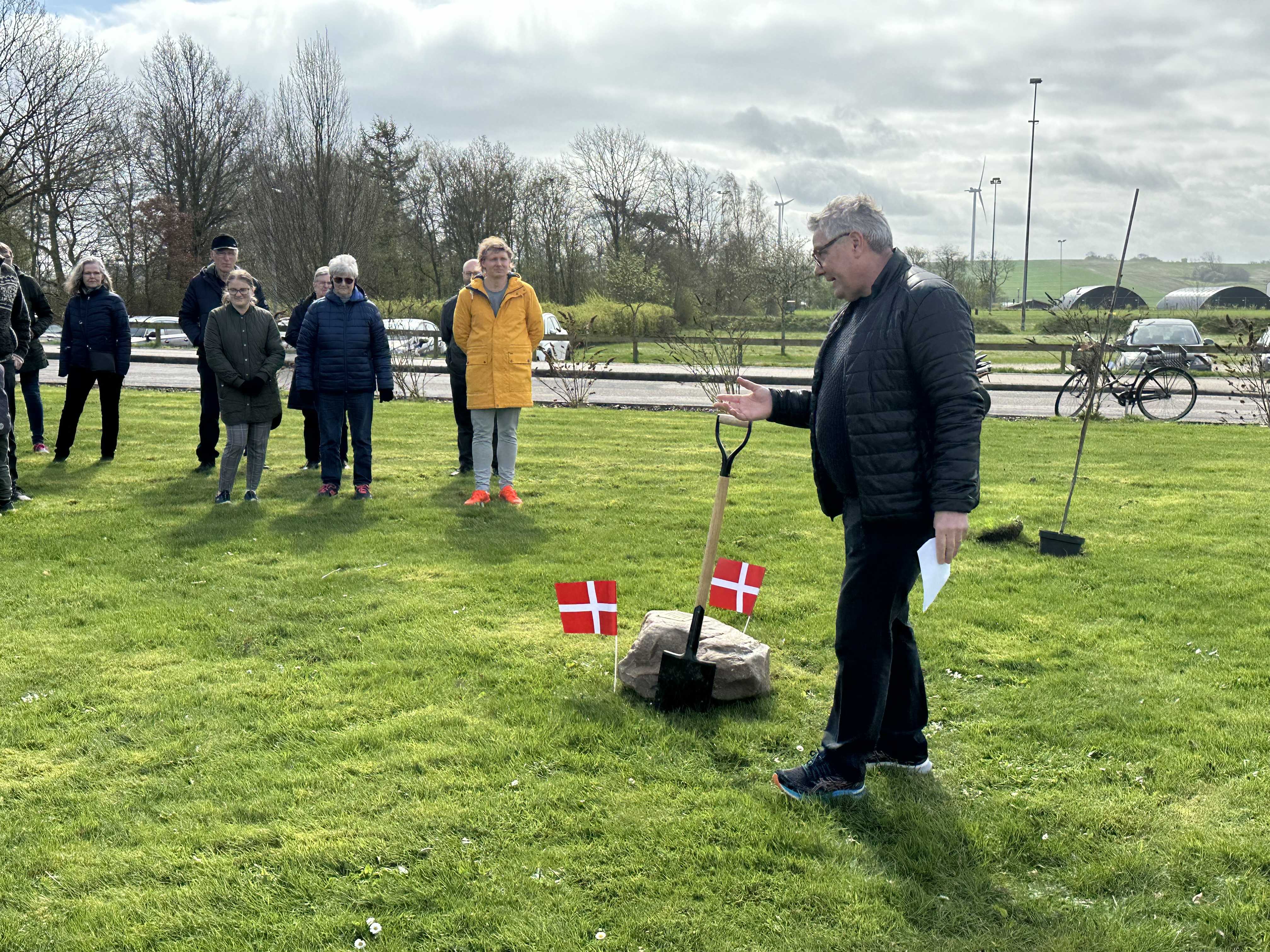 Byrådsmedlem Kasper Fuhr Christensen holdt tale ved træplantningen. Han var glad for at være med til at fejre dagen netop i Gjerlev. "En by med godt fællesskab, aktive og dejlige foreninger og flere steder at mødes".