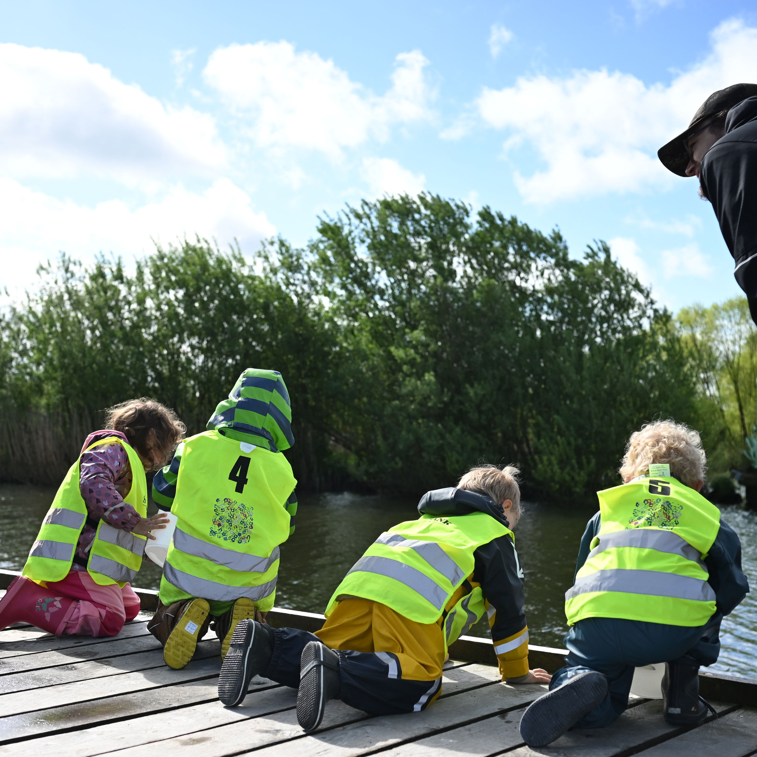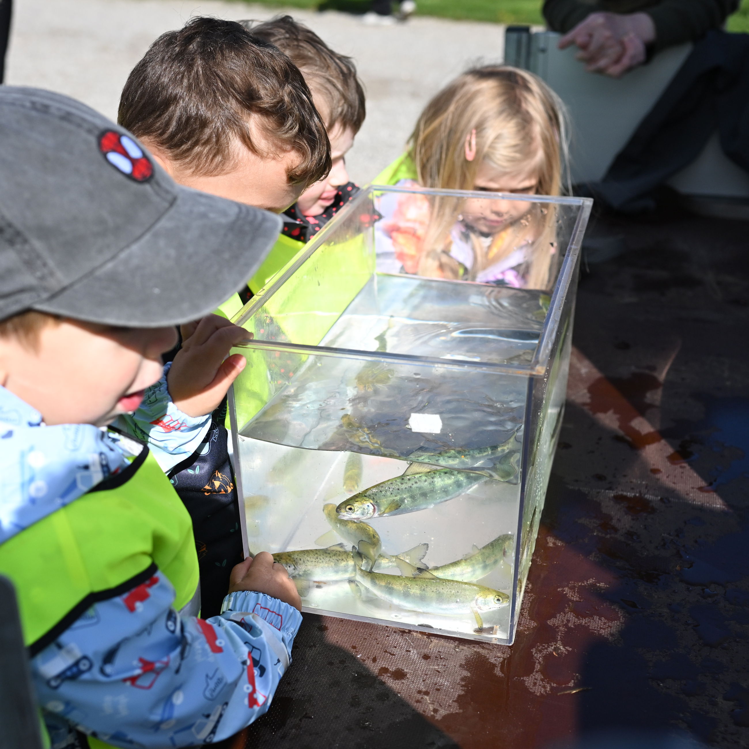 "Ja, vi er klar!" lød det fra børnene. I små grupper gik de med deres pædagoger med små spande ud på den buede træbro ved Justensens Plæne. Sammen med Torben Hansen, blev der talt ned fra fem - som en af børnene forslog - hvorefter de første små laks blev sat fri i Gudenåen. Herefter blev det til en del ture mellem tanken med fisk og broen for de yderst ivrige børnehavebørn.