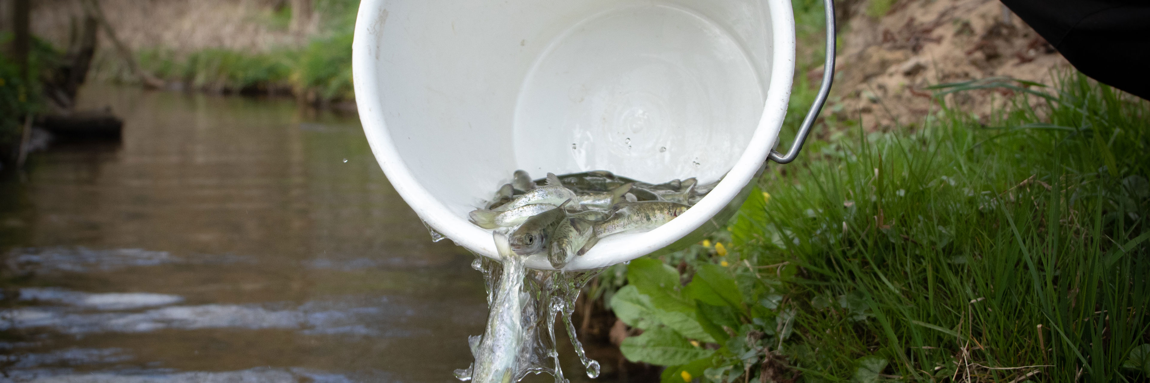 Børnehavebørn slipper 10.000 fisk fri i Gudenåen