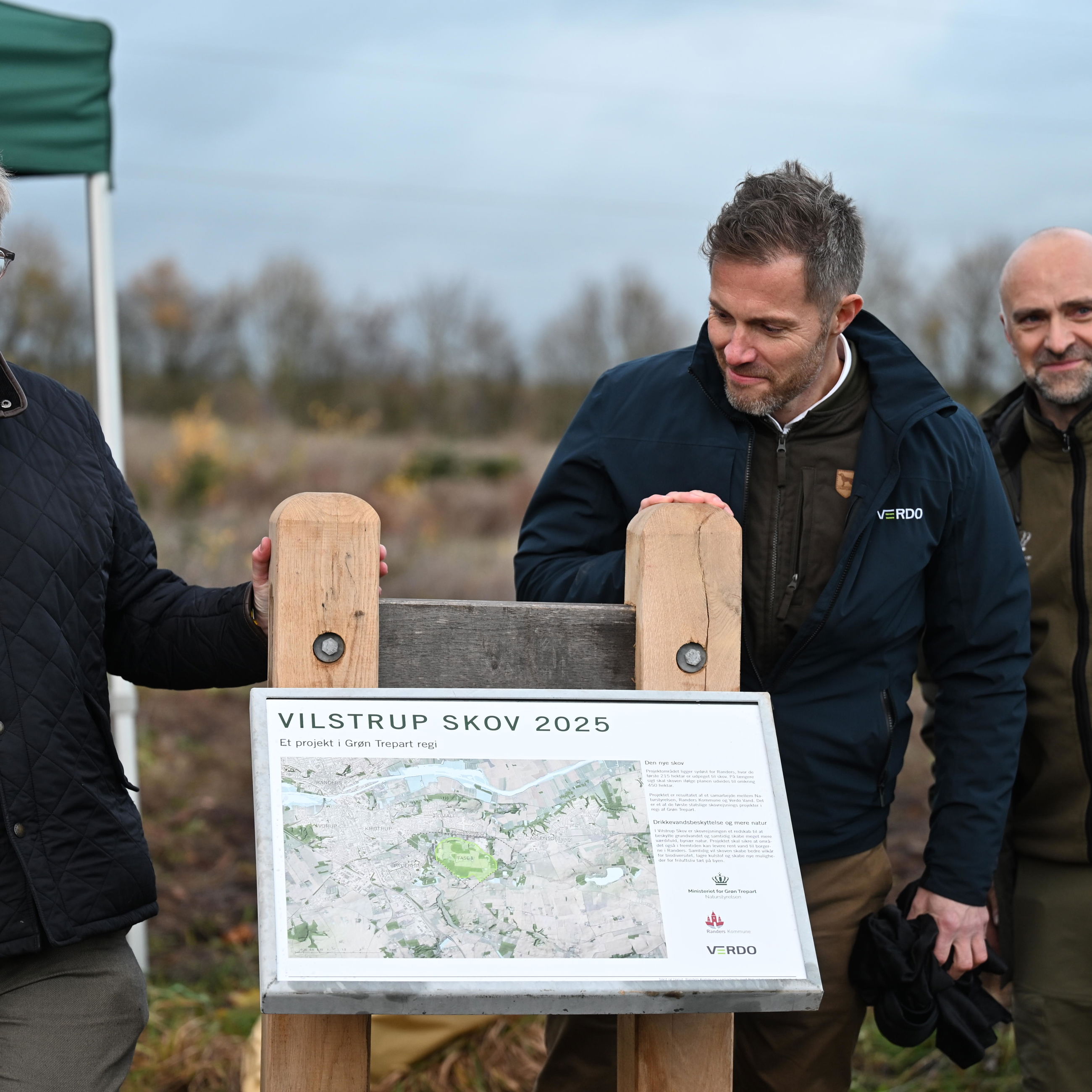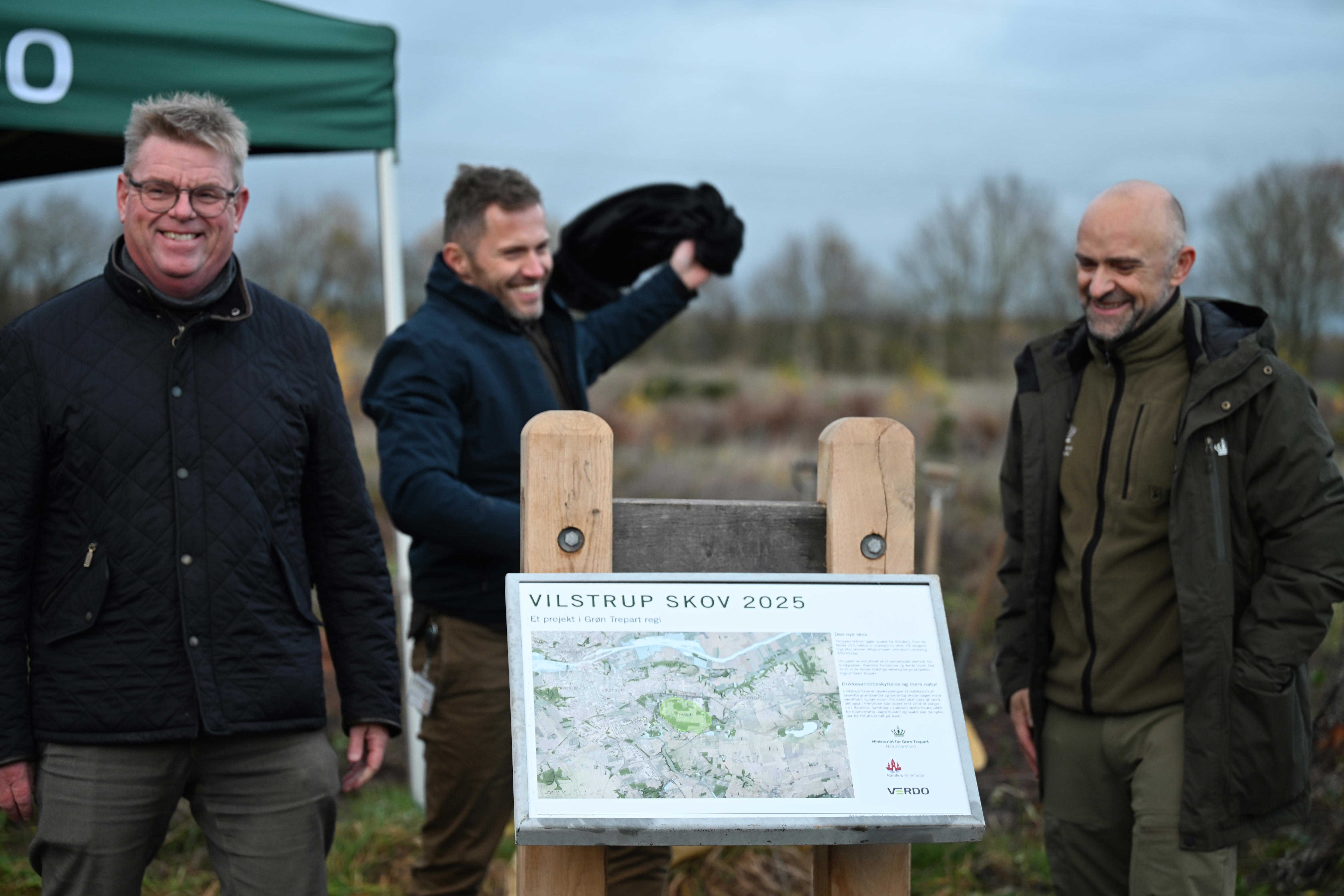 Randers Kommune, Verdo Vand og Naturstyrelsen etablerer i fællesskab Vilstrup skov - en investering i natur, klima og fremtidens drikkevand. I dag blev de første træer plantet, og arbejdet med den nye bynære skov er officielt sat i gang.