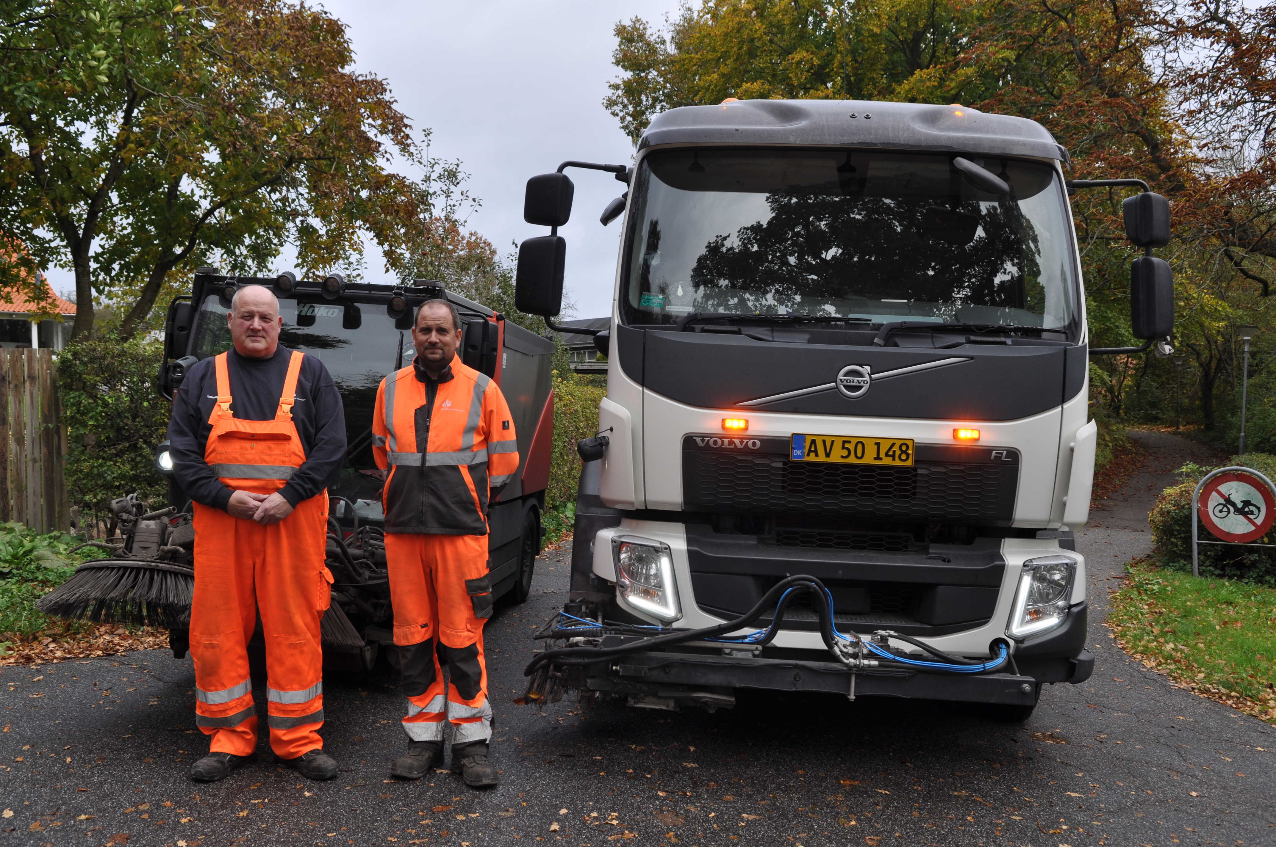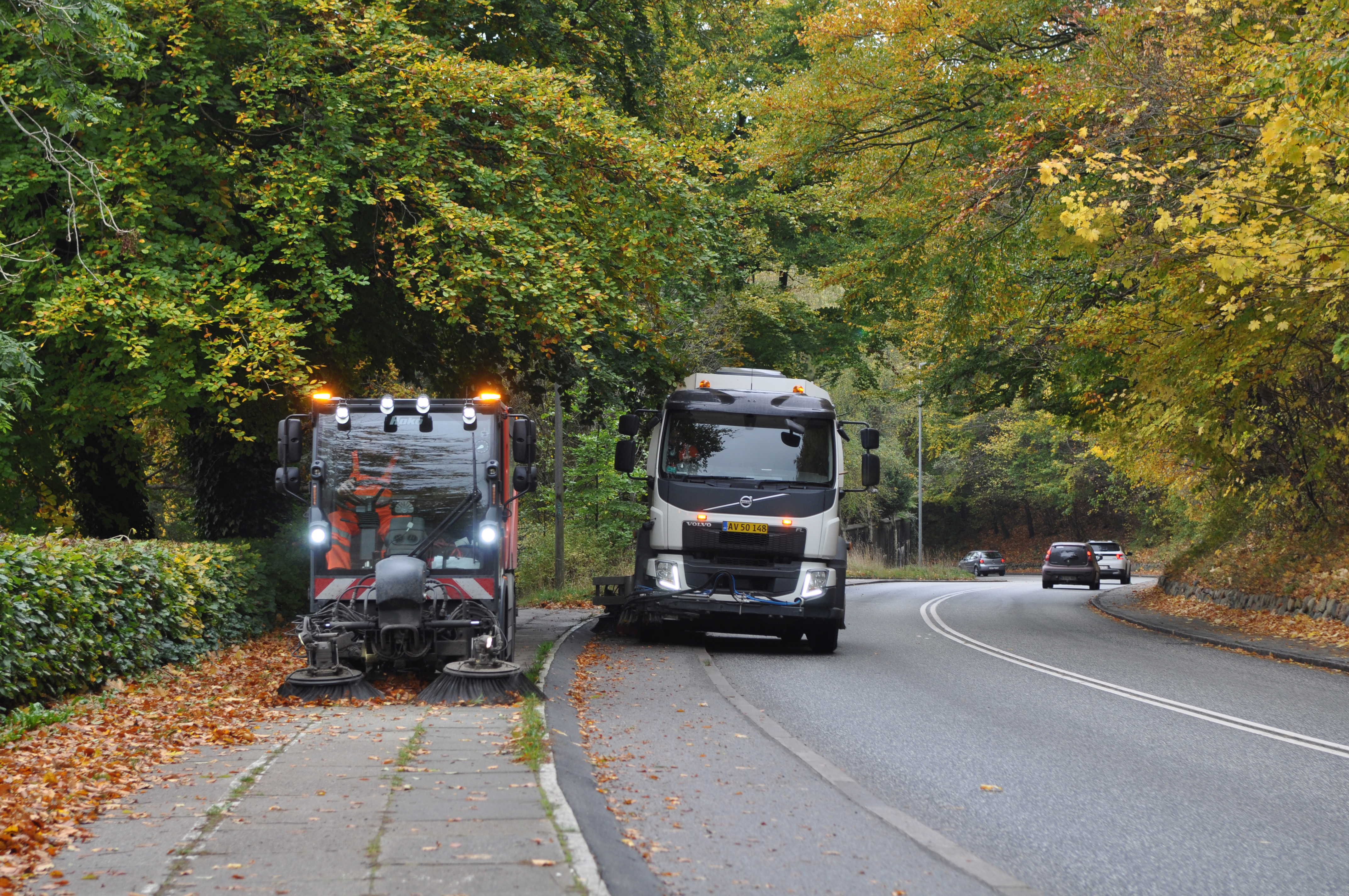 Driften fejer derfor hver 14. dag fra 1. oktober og frem til løvfald er slut. Der køres med to fejemaskiner – én til cykelstier og én til veje.