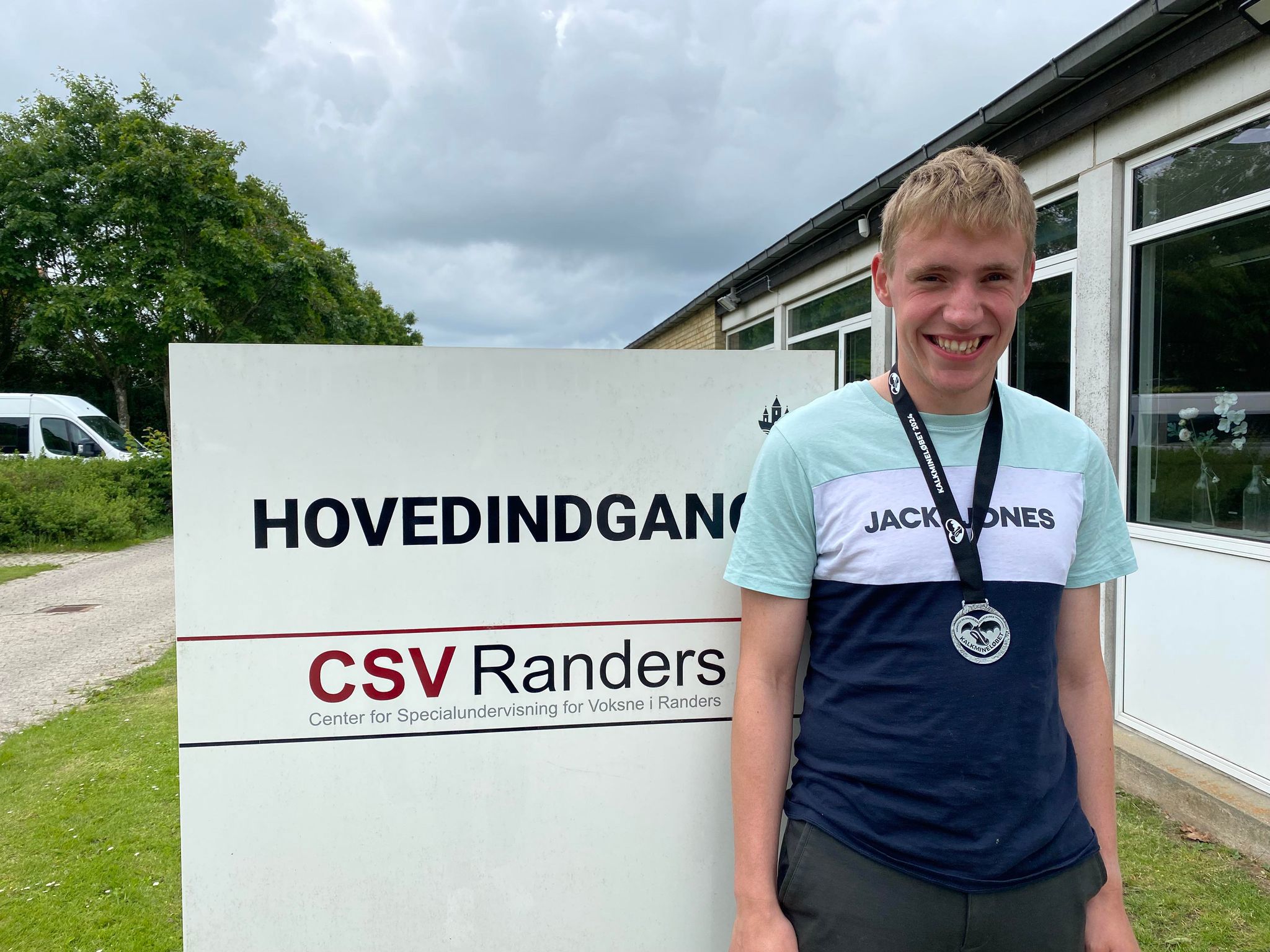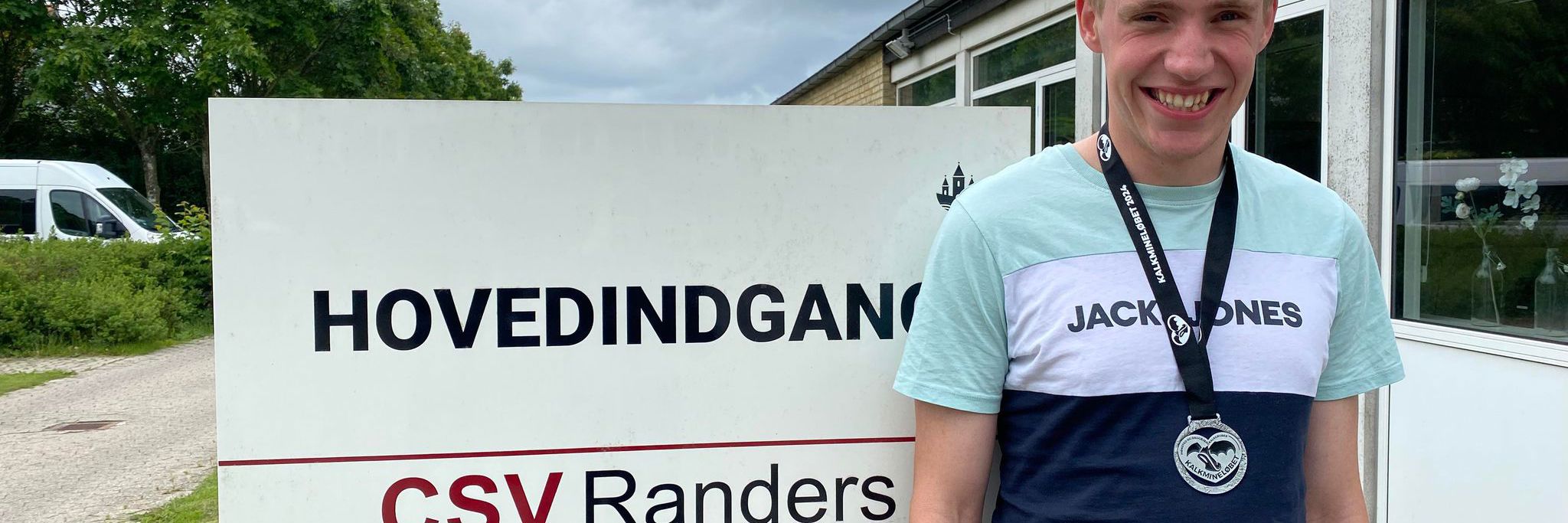 Simons imponerende præstation i Kalkmineløbet blev fejret på CSV Randers i Hald, hvor skolens personale og Simons medstuderende hyldede ham.