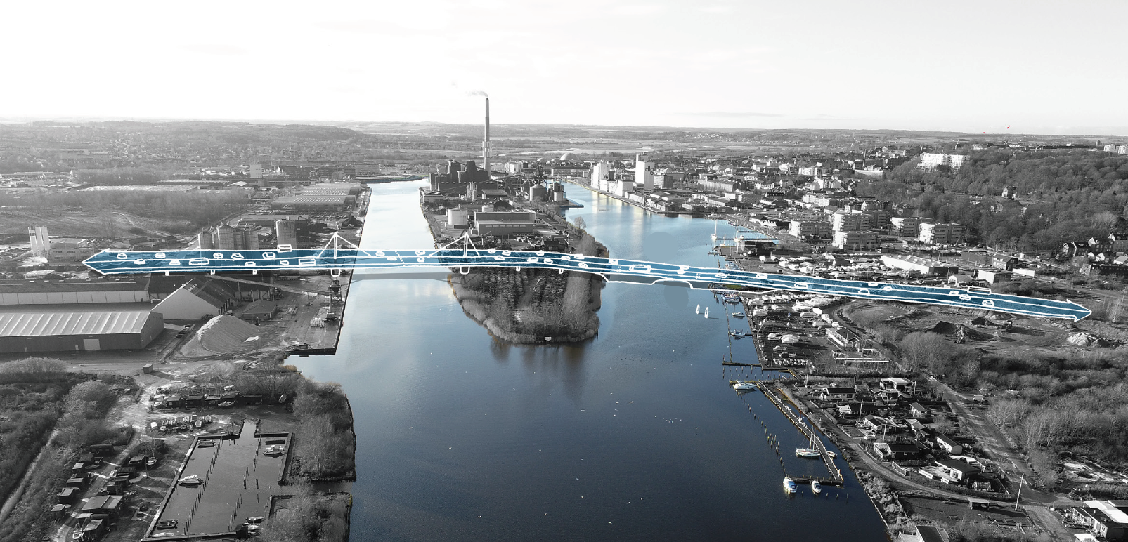 Klimabroen kommer til at bestå af en dæmning over det nordlige havnebassin til pierens østlige ende og en bro over det sydlige fjord- og å-forløb. Og mens der allerede er udarbejdet et detaljeret anlægsoverslag over den sydlige del, er der endnu ikke lavet tilsvarende detaljerede anlægstekniske undersøgelser for den nordlige del. Men det kommer nu, har byrådet besluttet på modet den 16. maj 2022.