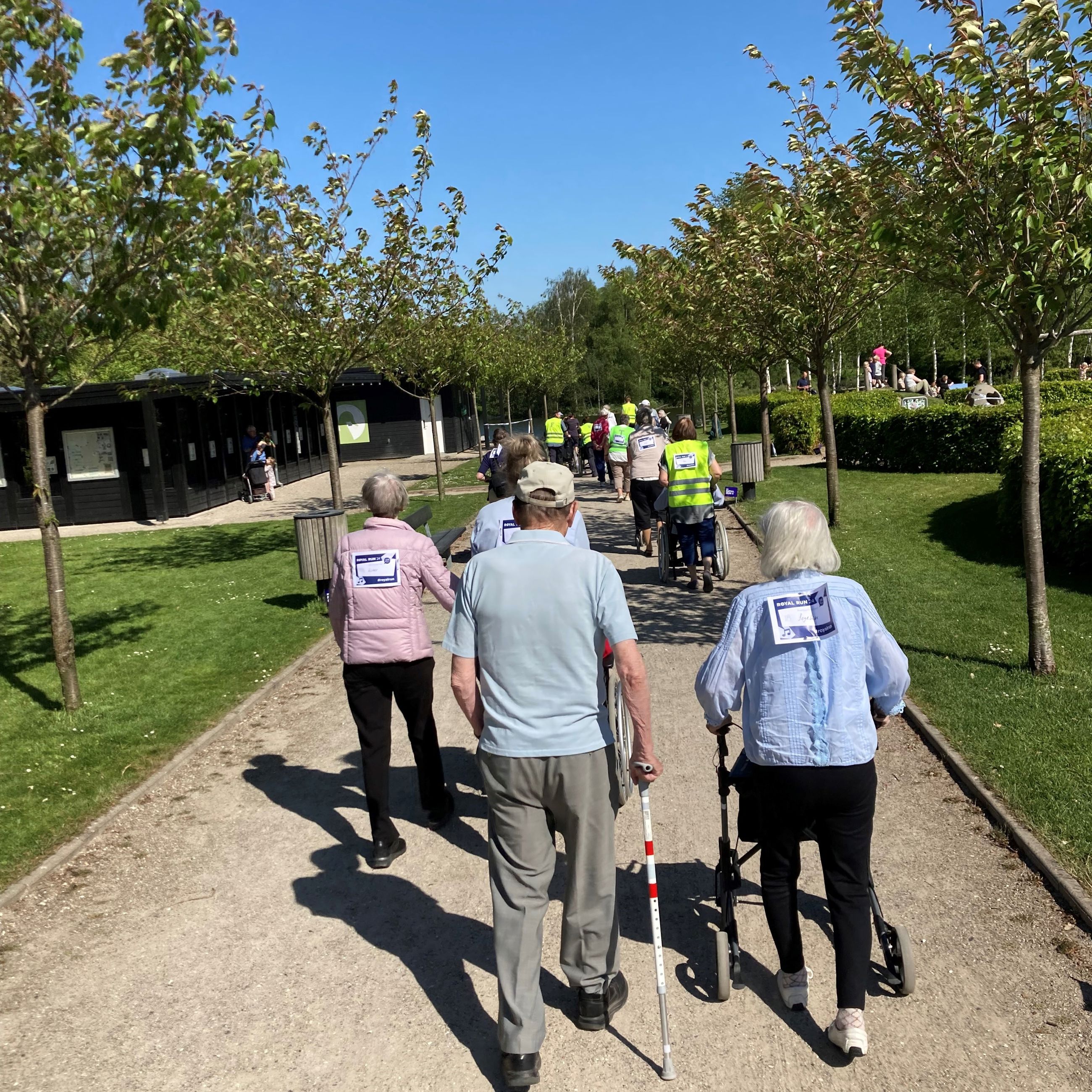 Kollektivhuset havde den største tilslutning med omkring 100 beboere og udeboende, samt 30 børn og pædagoger fra Børnehaven Birkebo. Turen på 1,2 km gik fra Kollektivhuset over i Doktorparken, hvor cykelpiloterne sørgede for, at flere ældre også kunne deltage i løbet. Pårørende skabte en festlig stemning med flag ved start og mål. Kaj på 100 år, som selvfølgelig også havde deltagernummer 100, blev dagens vinder som den hurtigste gående. Dagen sluttede af med levende musik og sandwich på terrassen, sponsoreret af aktivitetsudvalget.