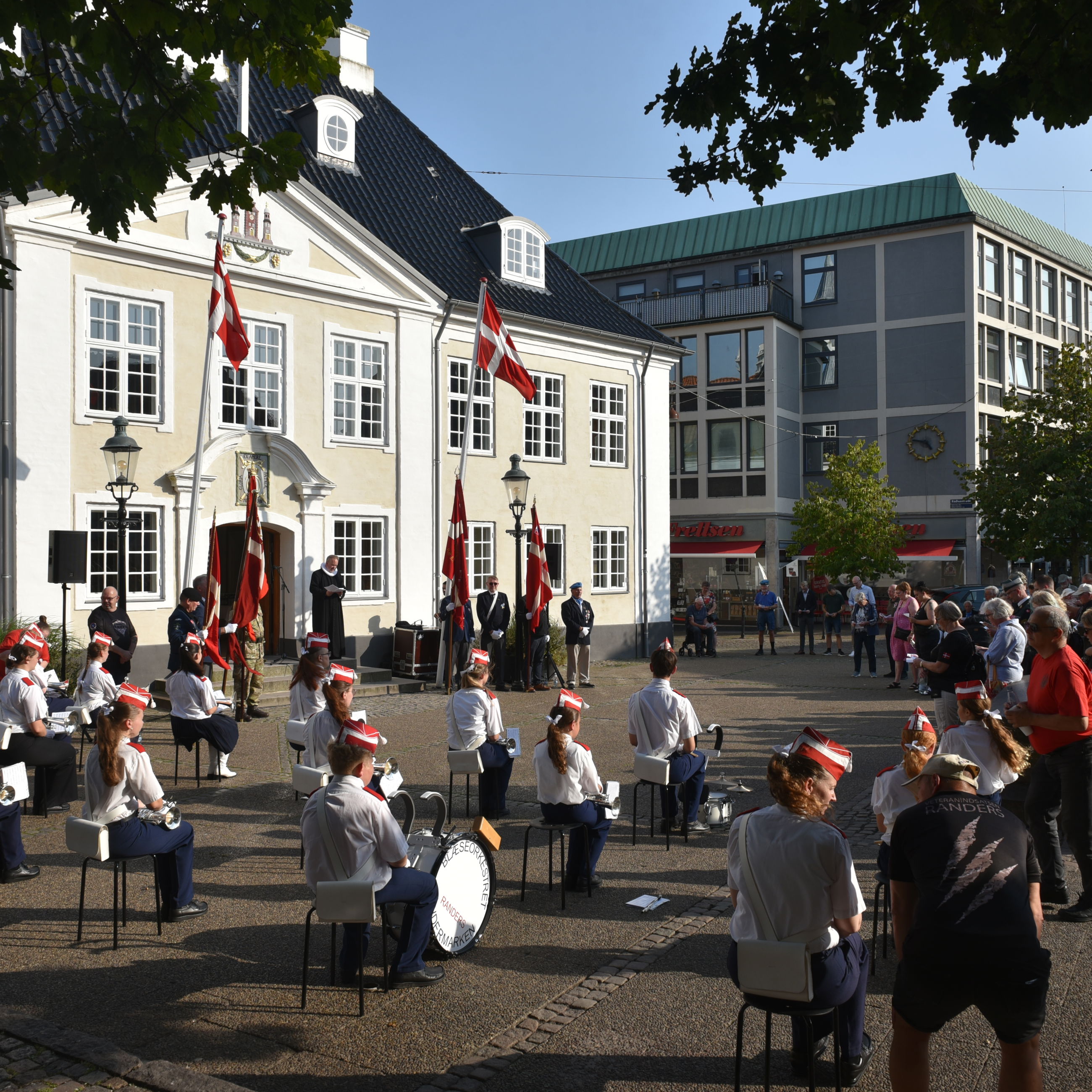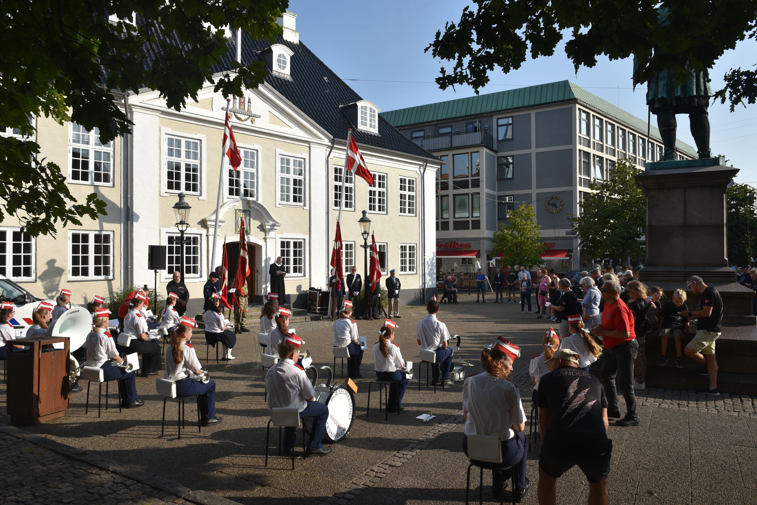 Efter ceremonien ved havnen marcherede deltagerne mod Rådhustorvet, hvor borgmester Torben Hansen i sin tale fremhævede, hvor vigtig dagen er: