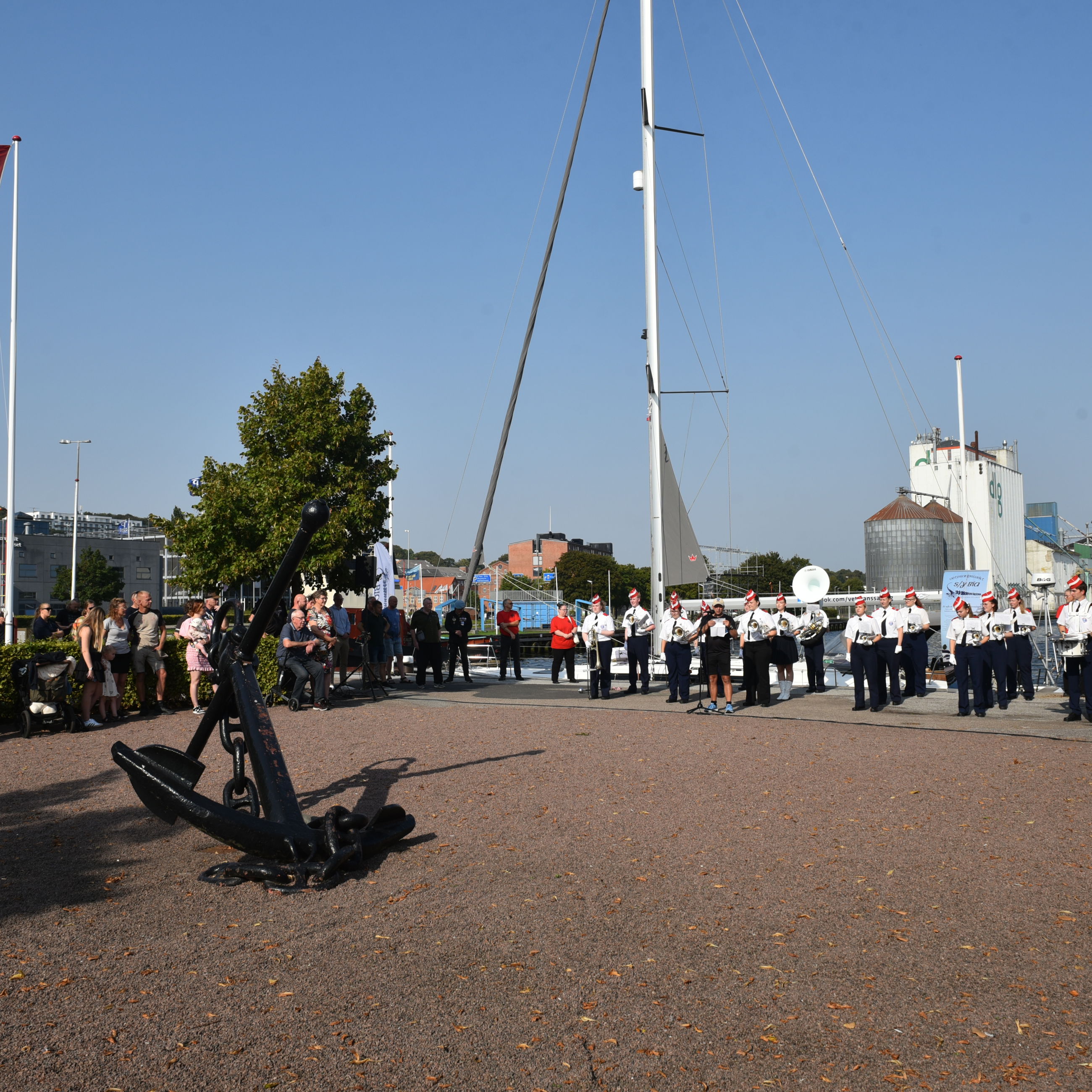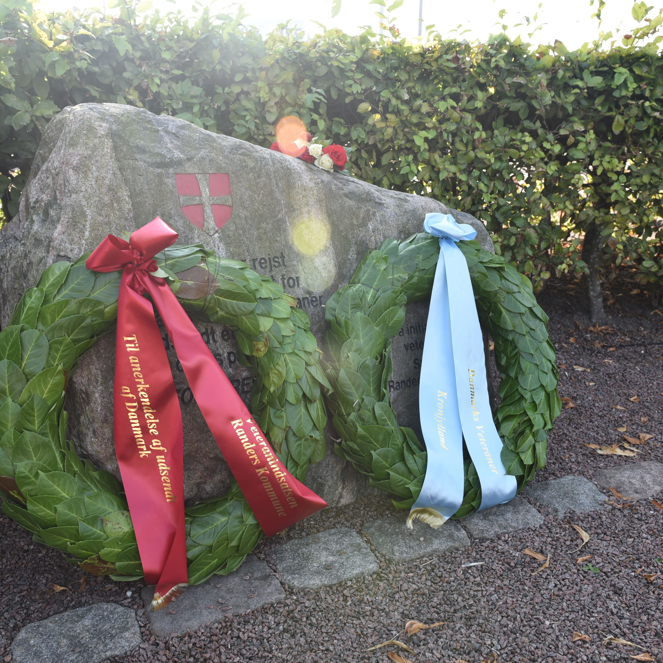 Blæseorkesteret Søndermarken spillede, mens fanekommandoen stod opstillet, og en krans blev nedlagt ved mindestenen for faldne og sårede veteraner.